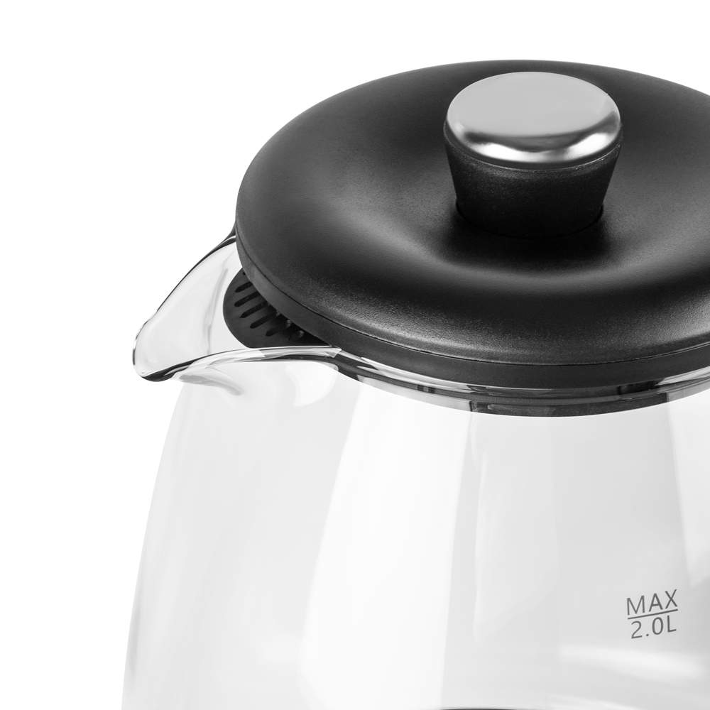Беспроводное соединение позволяет вращать чайник на подставке на 360 градусов, Корпус из высококачественного стекла, Светодиодная подсветка корпуса, Автоотключение при закипании воды, Автоотключение при отсутствии воды, Шкала уровня воды, Защита от перегрева, Скрытый нагревательный элемент, Фильтр-сетка для защиты от накипи, Эргономичная ненагревающаяся ручка