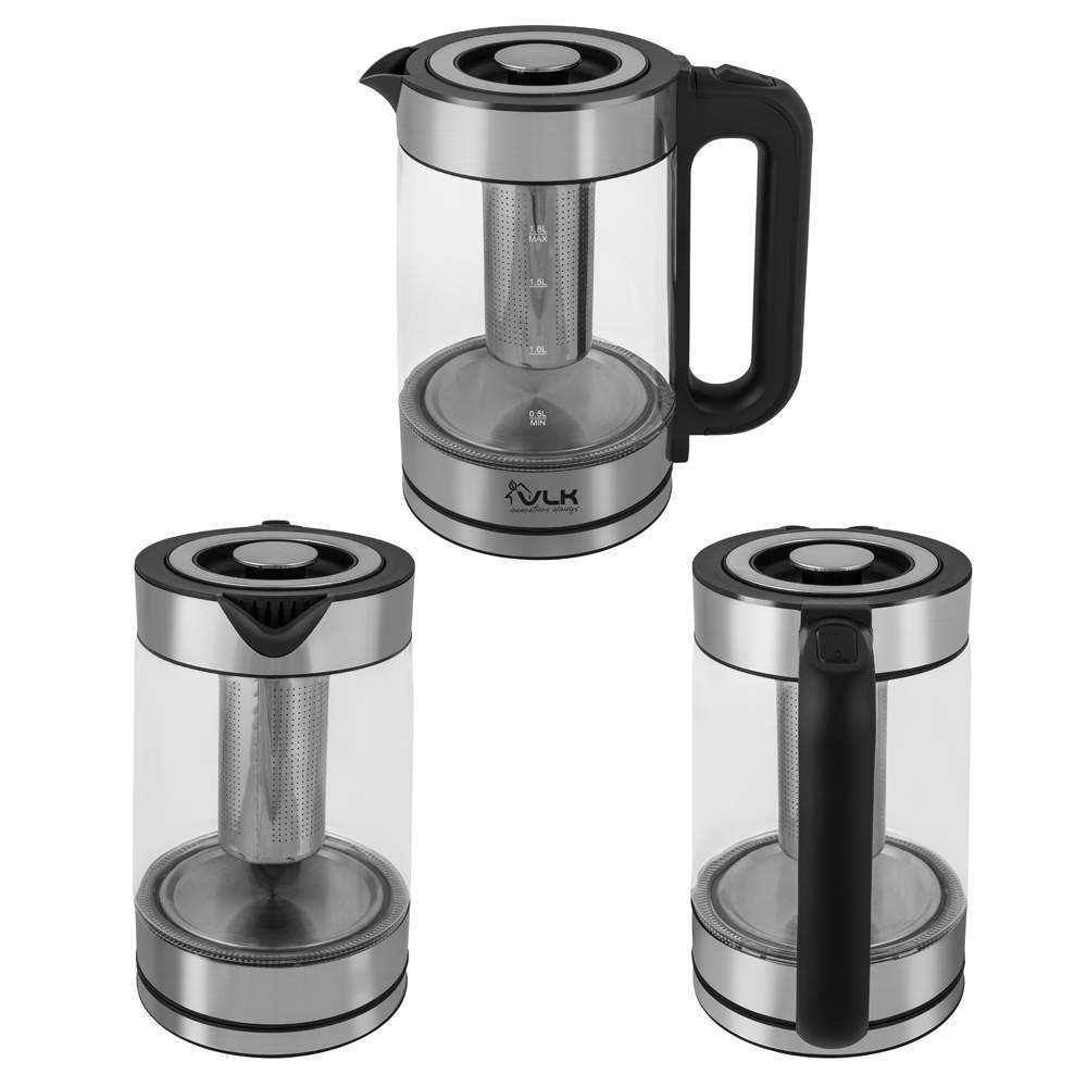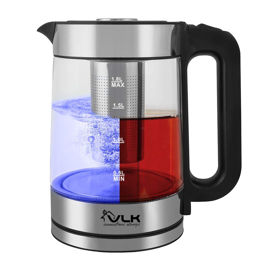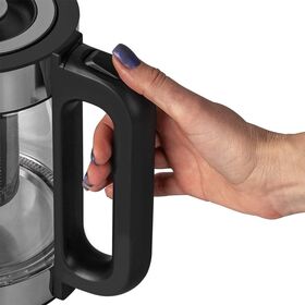 Беспроводное соединение позволяет вращать чайник на подставке на 360 градусов, Корпус из нержавеющей стали и BIO-стекла, Автоотключение при закипании воды, Съемное сито из нержавеющей стали для заваривания разных сортов чая внутри чайника, Защита от перегрева, Скрытый нагревательный элемент, Фильтр-сетка для защиты от накипи, Отсек для хранения шнура, Шкала уровня воды