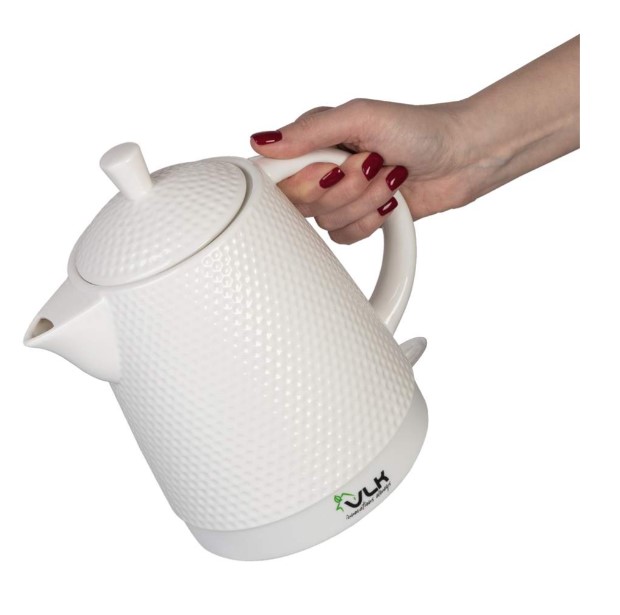 Корпус из эко-керамики сохраняет полезные свойства воды, Беспроводное соединение позволяет вращать чайник на подставке на 360°, Дисковый нагревательный элемент, Автоотключение при закипании и отсутствии воды, Эргономичная ненагревающаяся ручка, Удобный носик для розлива воды, Встроенный несъемный крупноячеистый фильтр для сбора накипи