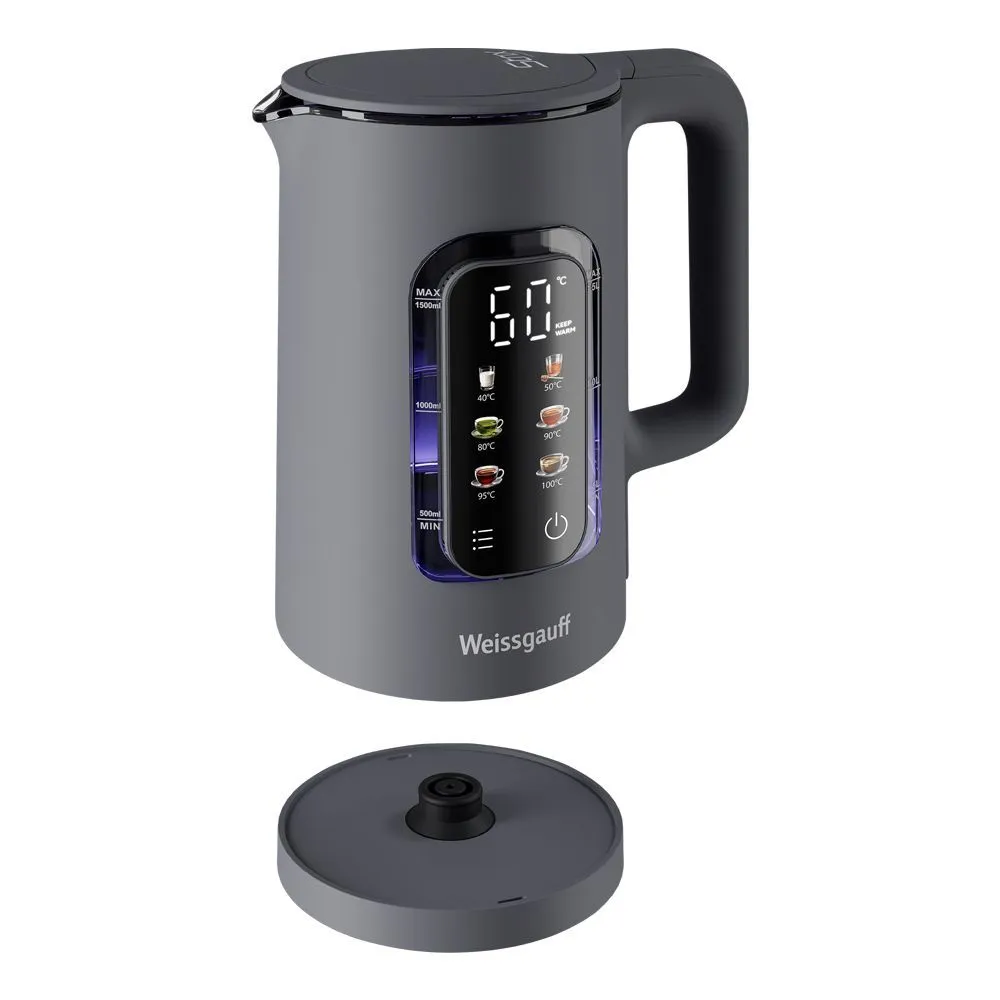 Конструкция чайника: Двухслойный корпус, Дисплей, Светоиндикатор работы, Вращение подставки на 360°, Отсек для шнура