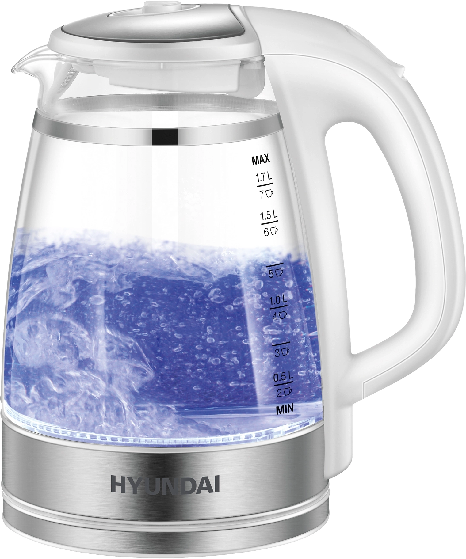Широко открывающаяся крышка для простоты залива и очистки чайника. Красивая LED подсветка украшает процесс закипания воды, служит индикатором работы.