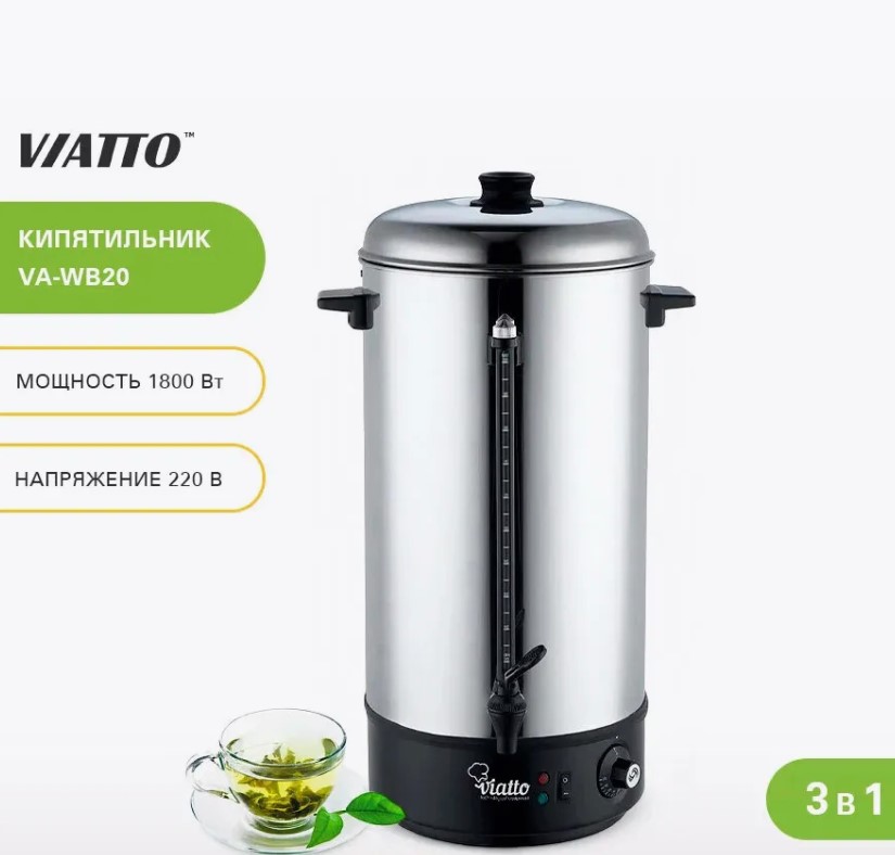 Электрокипятильник Viatto VA-WB20 157827 предназначен для нагрева и кипячения воды, а также поддержания её в горячем состоянии. Оснащён терморегулятором, закрытым ТЭНом и одинарными стенками. Есть мерное стекло, позволяющее отслеживать уровень воды. Благодаря удобным ручкам оборудование можно легко переносить. Корпус изготовлен из нержавеющей стали и пластика.