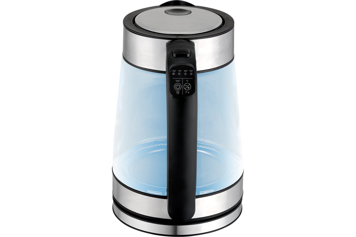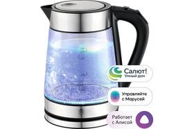 Корпус чайника выполнен из закаленного стекла, нержавеющей стали и высококачественного пластика, что является залогом долгой службы.