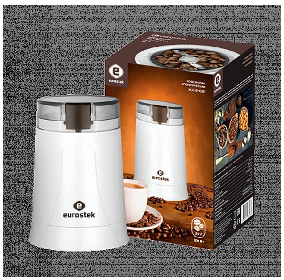 Кофемолка Eurostek ECG-SH02P – простое в использовании устройство, которое можно использовать для измельчения не только зернового кофе, а также круп, специй, очищенных орехов. Рабочая камера и ротационные ножи выполнены из нержавеющей стали, корпус и крышка – из качественного пластика. Максимальная доза помола, доступная на данной модели, равняется 50 г.