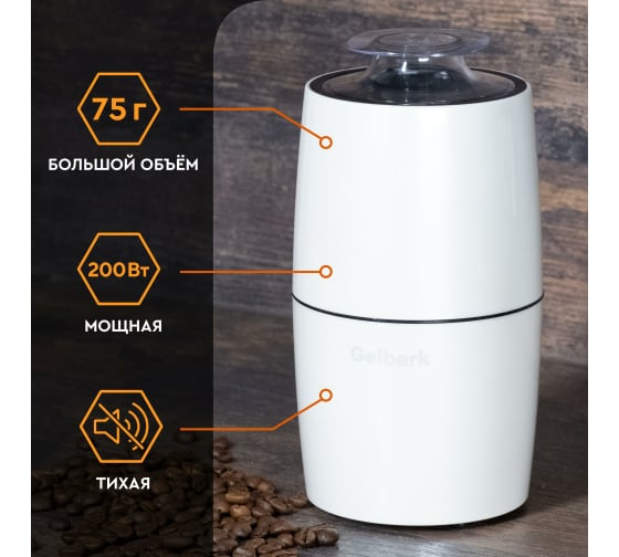 Кофемолка GELBERK GL-CG535 – незаменимый помощник на кухне. Тихая и удобная кофемолка в эргономичном стальном корпусе обеспечивает идеальный помол кофейных зерен.
