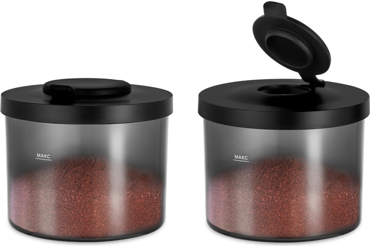 Резервуар для молотого кофе ёмкостью 130 г. Он оснащён крышкой с заглушкой, поэтому может использоваться для хранения кофе.