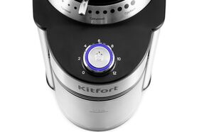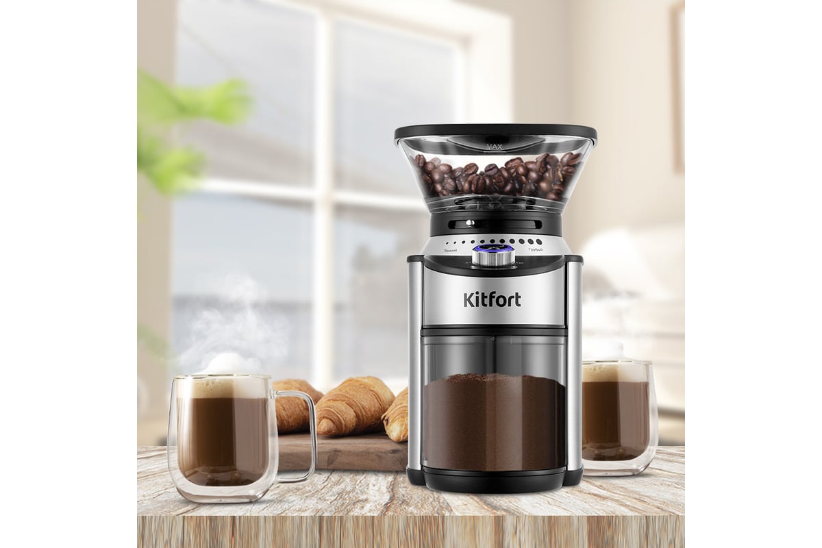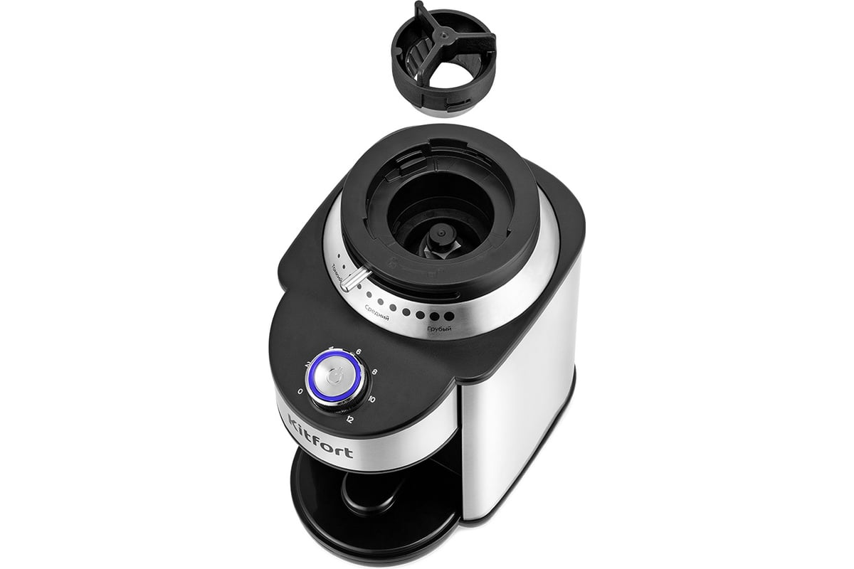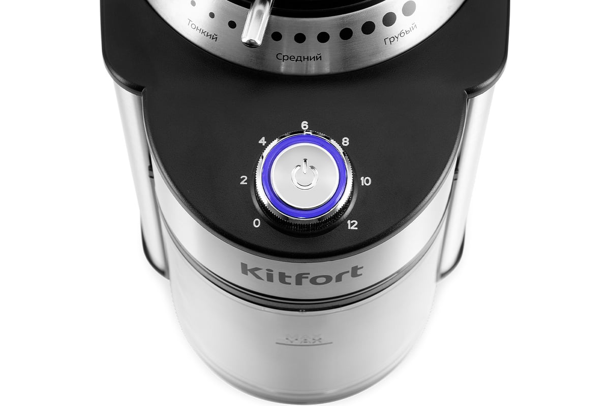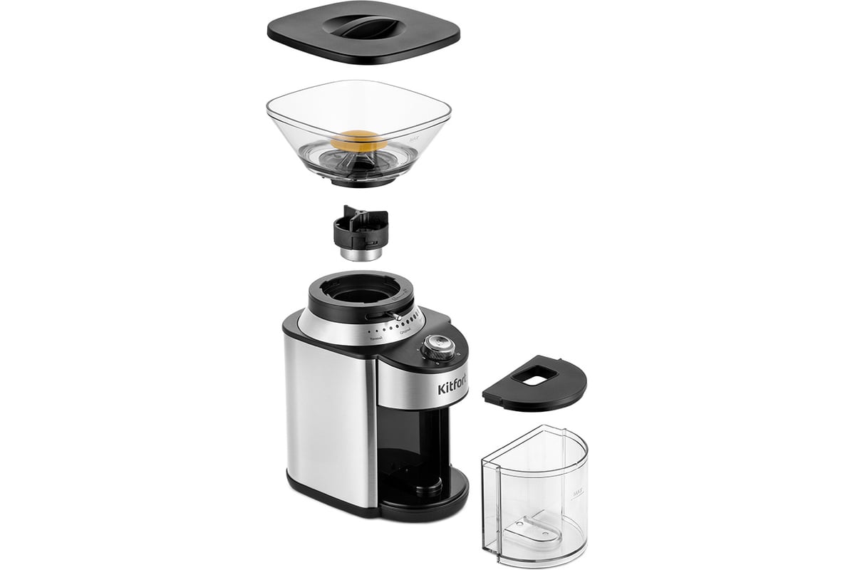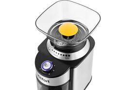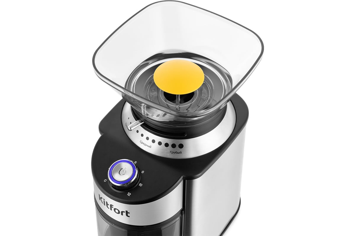 Жерновая кофемолка КТ-7202 предназначена для помола кофейных зерен. Она оснащена коническими металлическими жерновами.