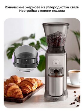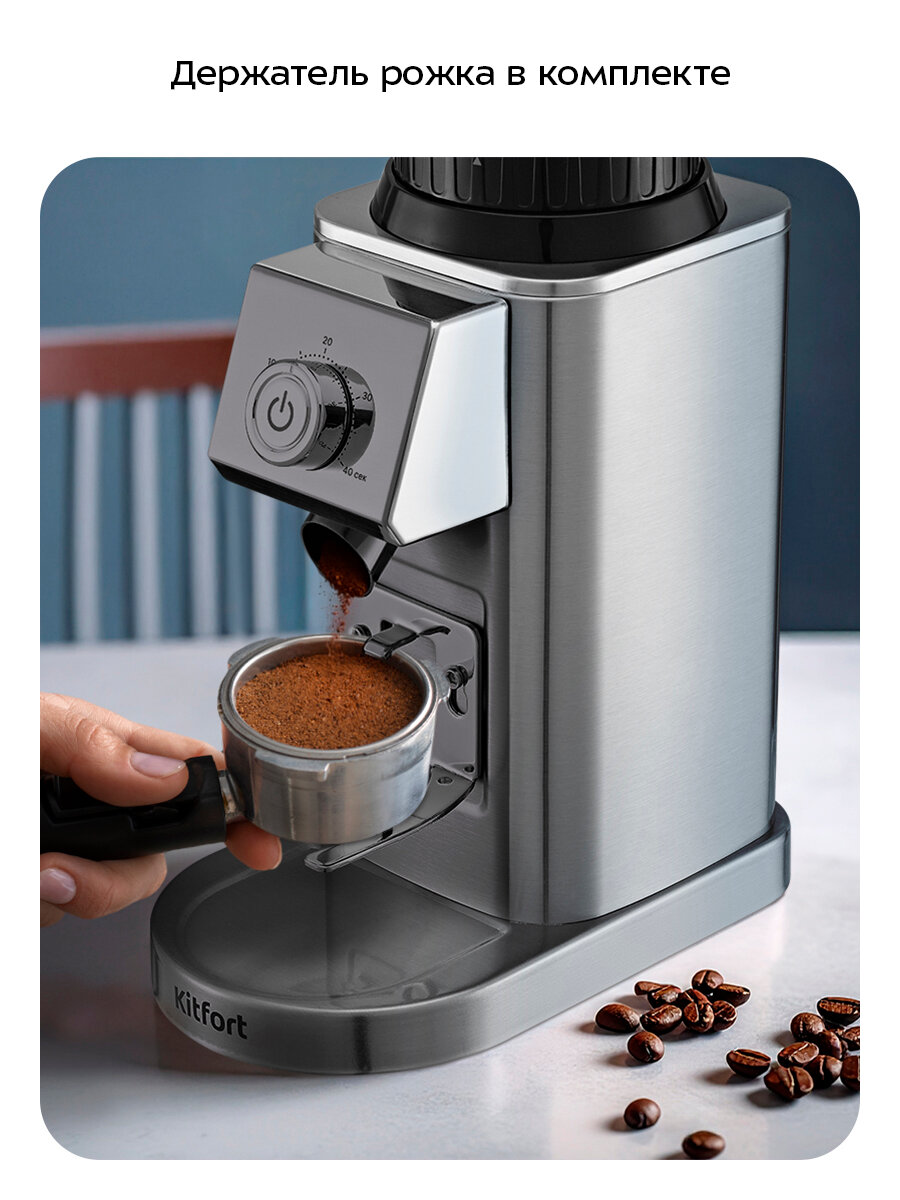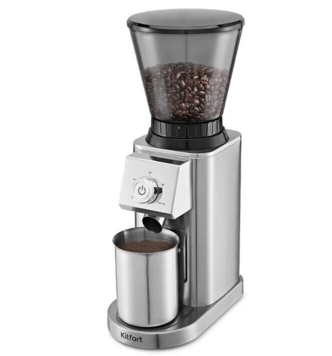 Жерновая кофемолка КТ-7589 предназначена для помола кофейных зёрен. Она оснащена коническими жерновами из нержавеющей стали. КТ-7589 даёт равномерный помол и позволяет настроить его степень: от мелкого для приготовления эспрессо до среднего для пуровера.