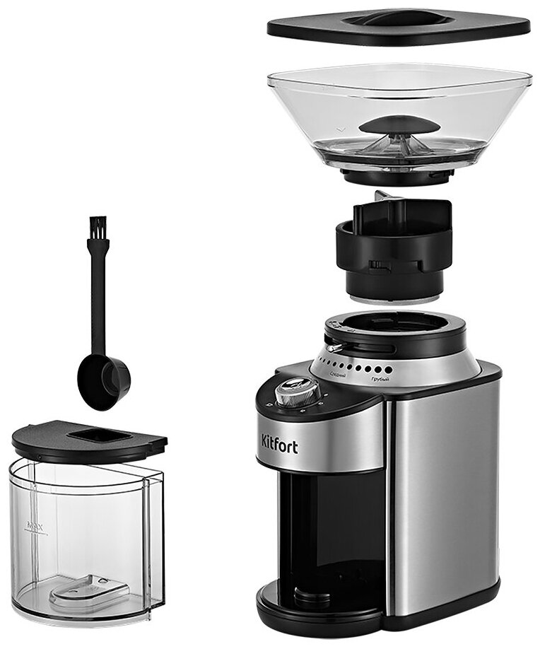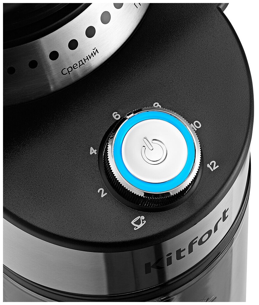 Жерновая кофемолка Kitfort КТ-770 предназначена для помола кофейных зёрен. Она оснащена плоскими металлическими жерновами из стали. Благодаря чему, при помоле, кофе не перегревается и не меняет свой вкус.