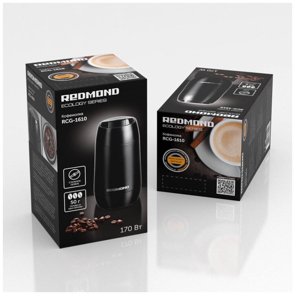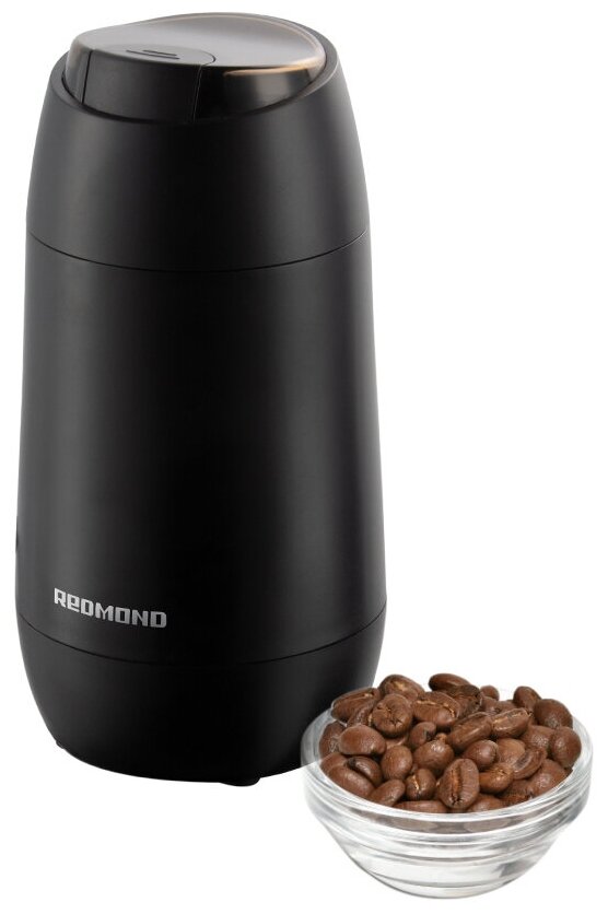Кофемолка REDMOND RCG-1610 — компактный и надежный помощник для любителей ароматного свежемолотого кофе. Скорость вращения ножей в кофемолке достигает 20 000 — 23 500 об/мин: с ее помощью вы за пару минут измельчите кофейные зерна или специи.