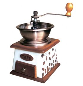 Корпус и перемалывающий механизм изготовлены из высококачественной керамики, выдвижной ящик для кофе изготовлен из высококачественного дерева.