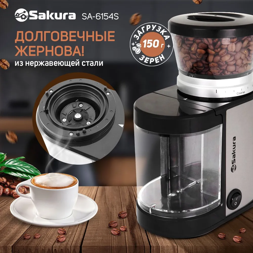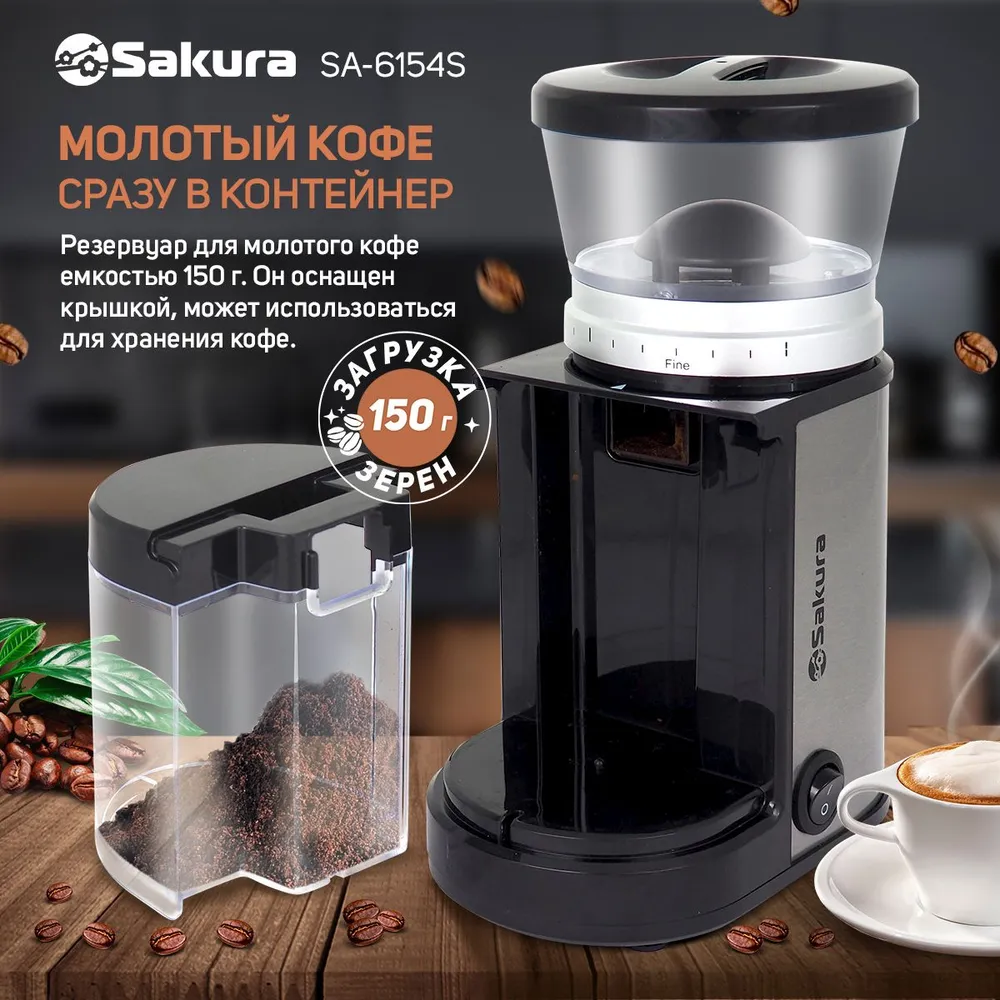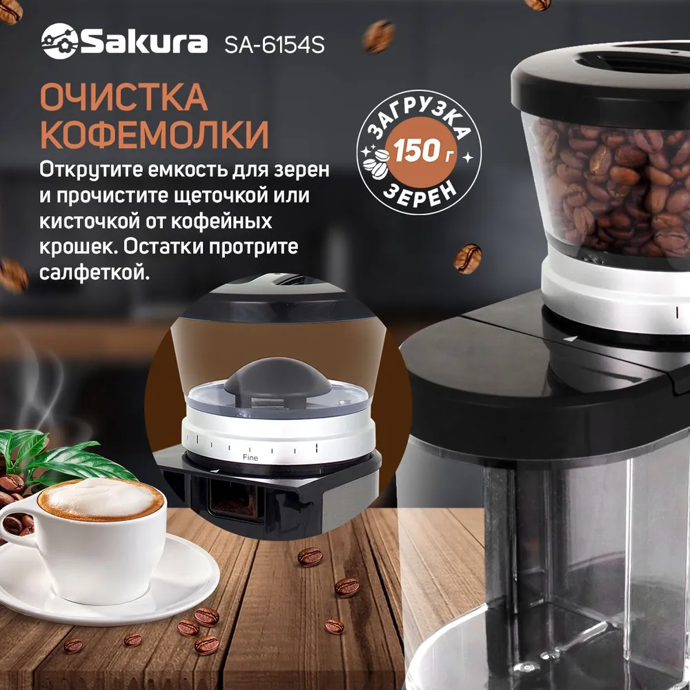 Регулировка степени помола: 9 степеней помола (от 1 до 9); 3 категории помола: FINE – тонкий помол, MEDIUM – средний помол, COARSE – грубый помол