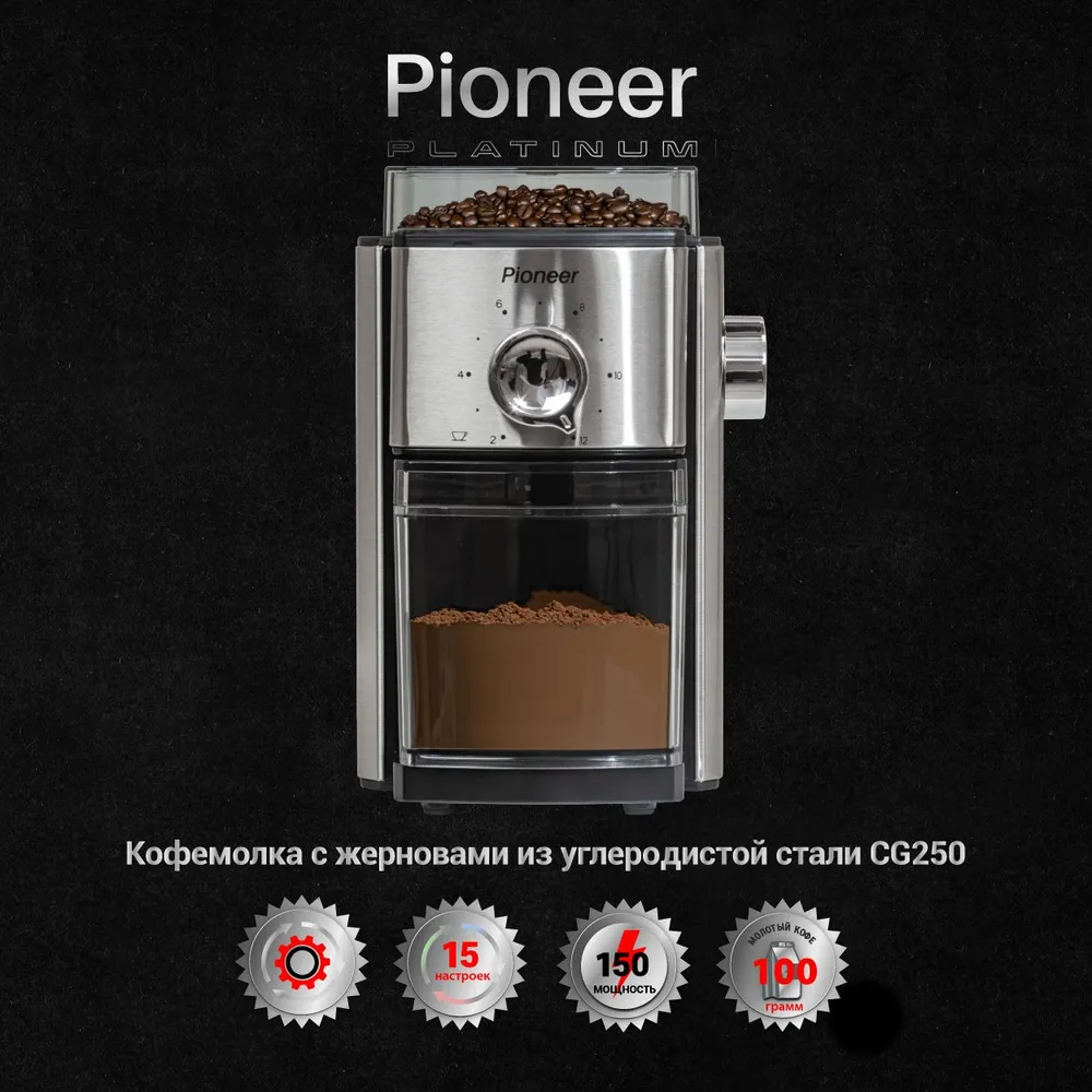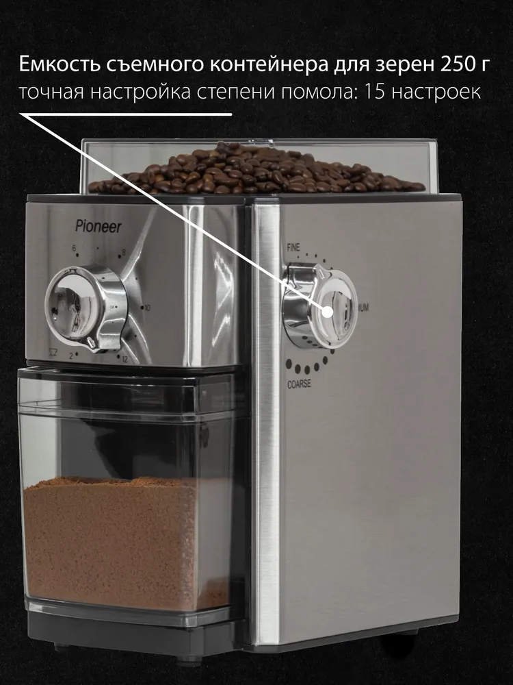 Конструктив кофемолки: Емкость для молотого кофе, Съемный резервуар для кофе, Прорезиненные ножки