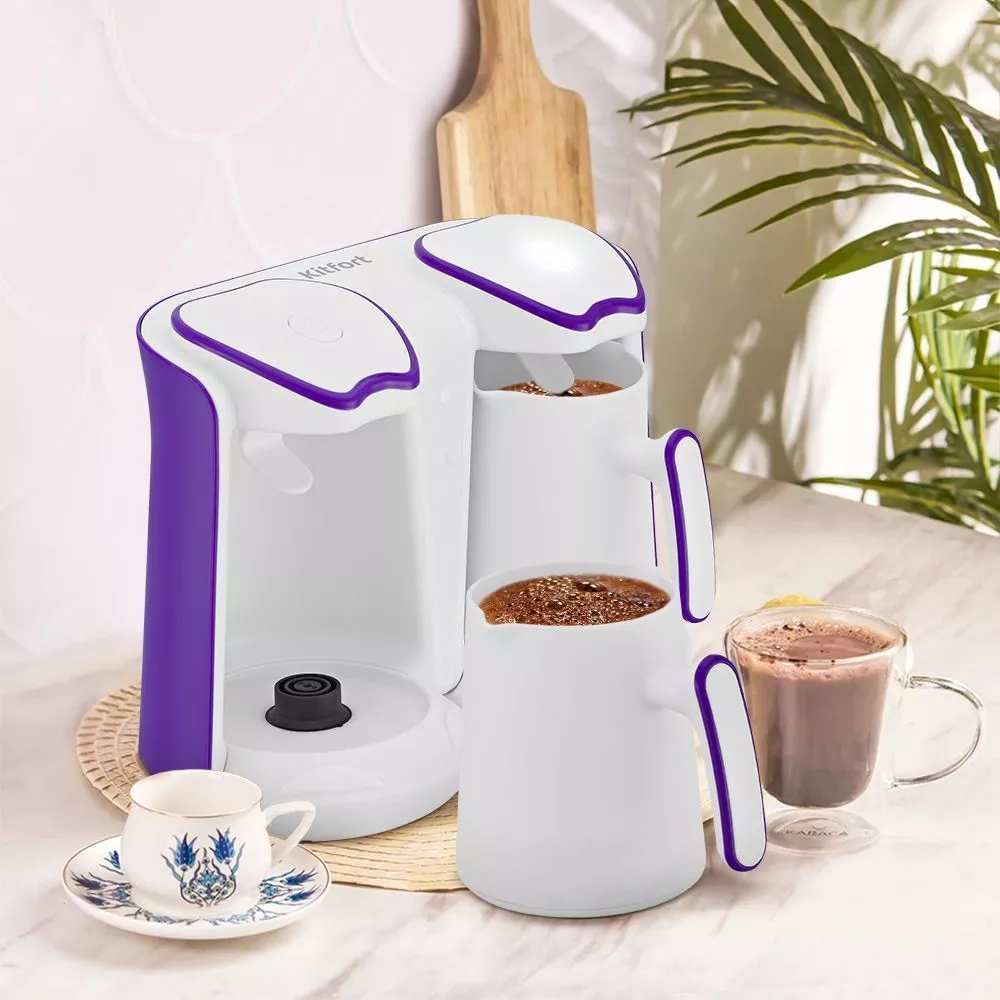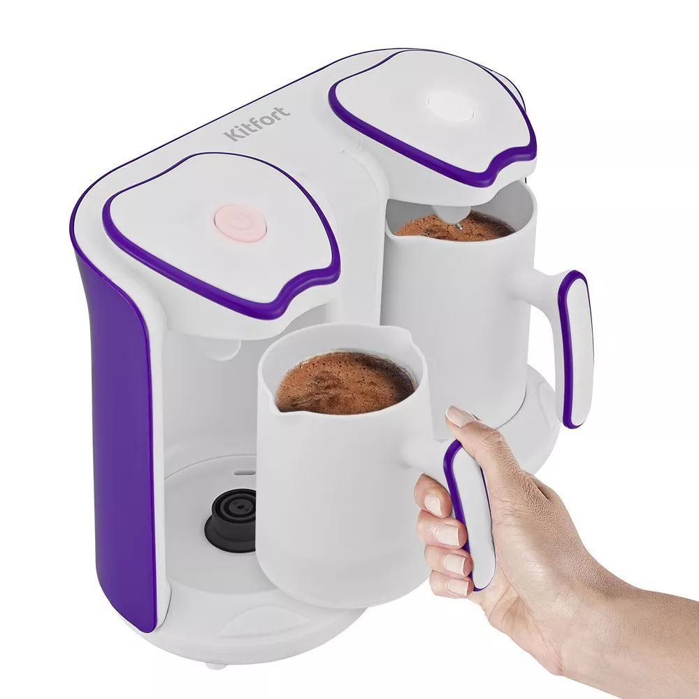 Электрическая турка Kitfort КТ-7134 предназначена для приготовления ароматного турецкого кофе. С её помощью вы сможете сварить до 8 чашек кофе по 60мл. Устройство состоит из одной базы и двух турок, которые можно использовать независимо друг от друга.