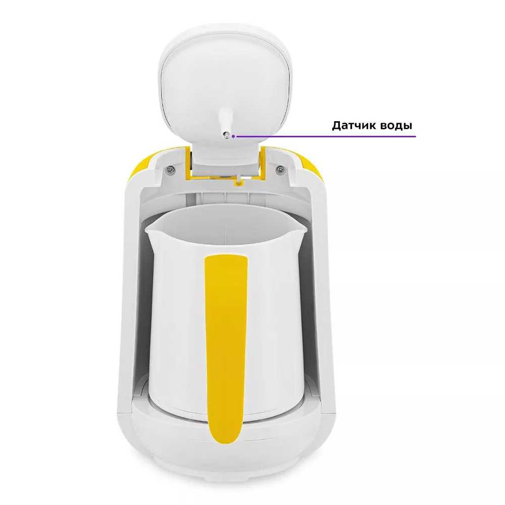 Для разного количества чашек у турки есть предустановленное время работы, по истечении которого турка автоматически отключается. Если пенка поднялась раньше установленного времени, прибор отключится. Для этого у электрической турки есть датчик воды.