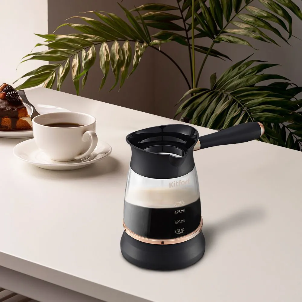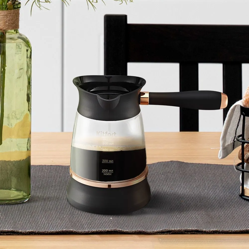 Ручка турки пластиковая. Она не нагревается и удобно лежит в руке. Ручка съёмная, поэтому турку удобно хранить. Рекомендуется очищать турку сразу после каждого приготовления.