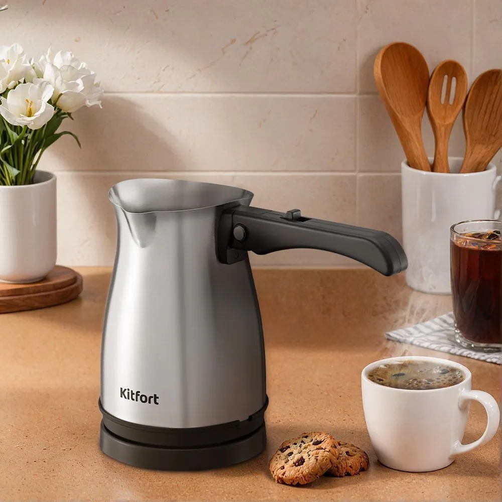 Электрическая турка КТ-7525 варит кофе по-турецки. С ней вы сможете быстро сварить натуральный кофе на 5 чашек по 60 мл. Чтобы сварить кофе по-турецки, в турку засыпают молотый кофе, заливают воду и доводят её до кипения. При этом образуется пенка.