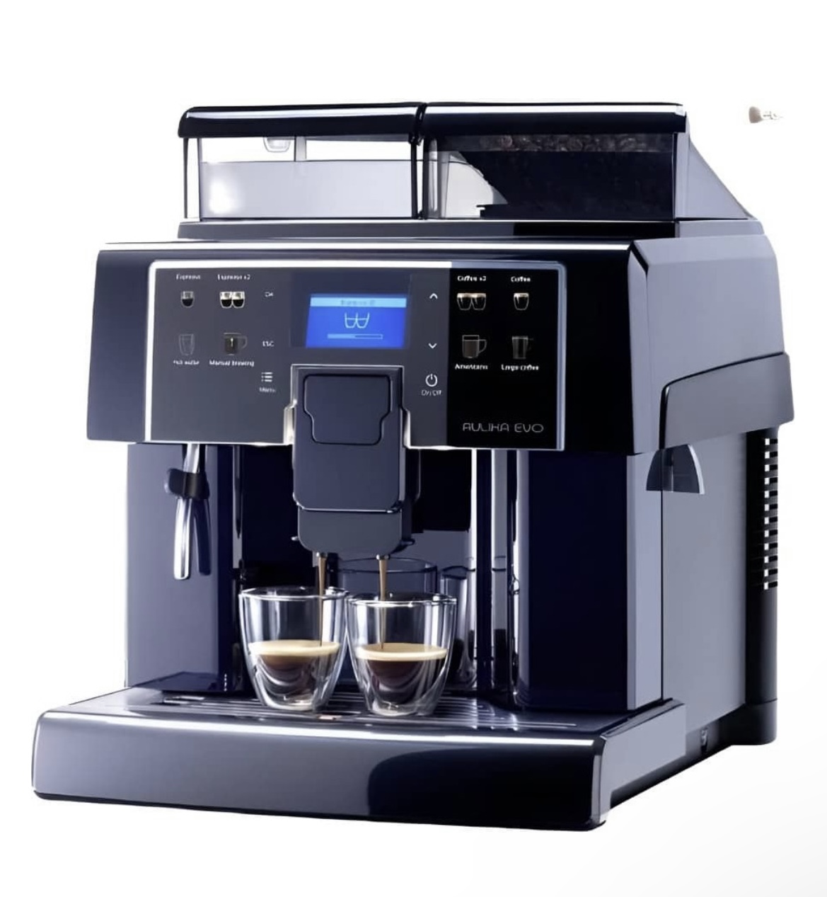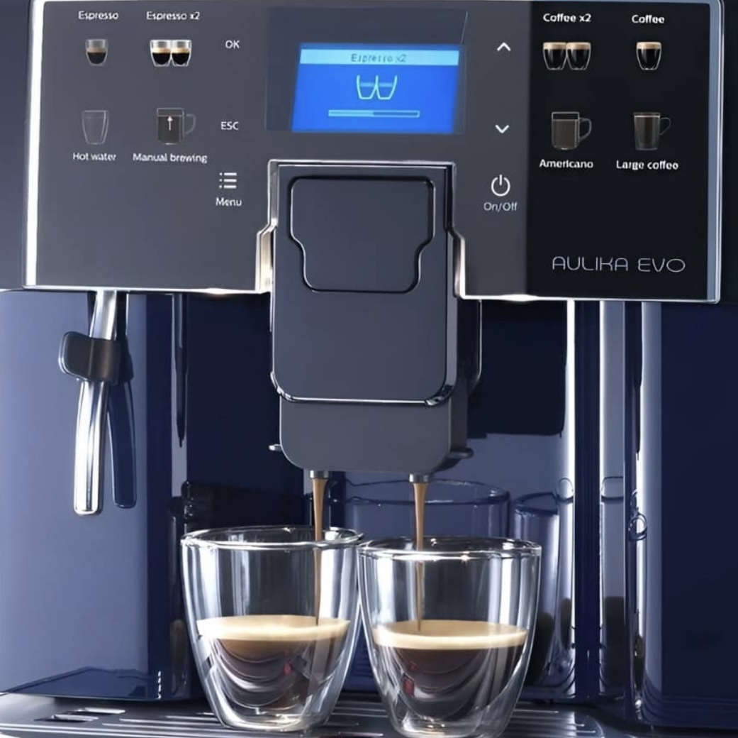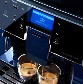 Автоматическая кофемашина Aulika Evo Black торговой марки Saeco является универсальным полупрофессиональным оборудованием, предназначенным для работы в условиях повышенной нагрузки в магазинах, клиниках, офисах, салонах, кафе и заведениях общепита. Аппарат способен выдавать до 130 порций каждый час. На сенсорном дисплее можно выбрать один из восьми кофейных напитков, отображенных на кнопках.