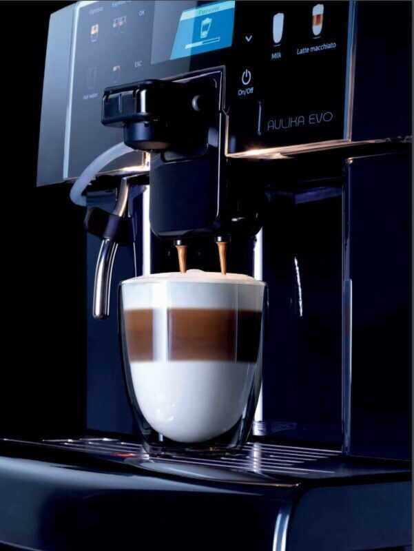 Кофемашина SAECO Aulika Top EVO RI - Новый современный и стильный дизайн и все те же выигрышные характеристики семейства Aulika. Главной особенностью модели является приготовление эспрессо (espresso) за 25 секунд, капучино (cappuccino) за 35 секунд и латте (latte) за 45 секунд! Автоматический капучинатор, которым оснащена модель, расположен так, что взбитое молоко подается в той же зоне, что и кофе. А молоко забирается из любой тары.
