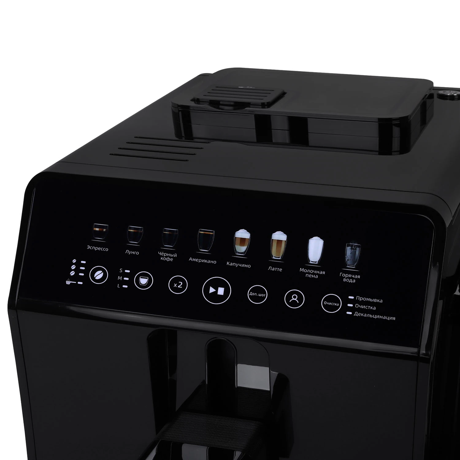 Кофемашина управляется интуитивно понятным сенсорным дисплеем. Изделие имеет автоматический капучинатор, который создает воздушную молочную пену.
