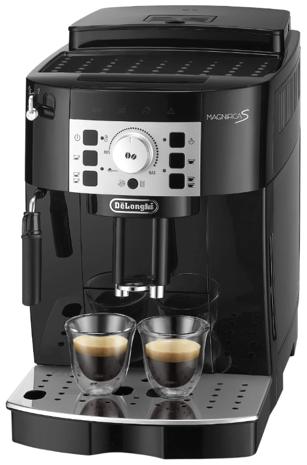 Компактная автоматическая кофемашина DeLonghi Magnifica S ECAM 22.115.B перенесет вас в мир кофе таким, каким вы его любите. Одним нажатием кнопки вы можете приготовить ароматный бодрящий эспрессо в истинно итальянском стиле. Вы можете настроить вкус, количество и температуру кофе по своему вкусу. Если вы любите кофе с молоком, с помощью Системы Капучино вы приготовите бархатистое молоко, благодаря которому откроете для себя новое богатство кофейных вкусов.