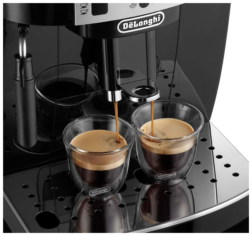 Экономия времени и простота приготовления кофе — одна из ключевых целей дизайнеров De'Longhi. Поэтому автомат De'Longhi ECAM 22.115.B позволяет приготовить 2 эспрессо одновременно, без ущерба для качества и вкуса кофе. Более того, устройство не только готовит кофе вашей мечты из свежих зерен одним нажатием кнопки, но и позволяет готовить настои из молотого кофе.