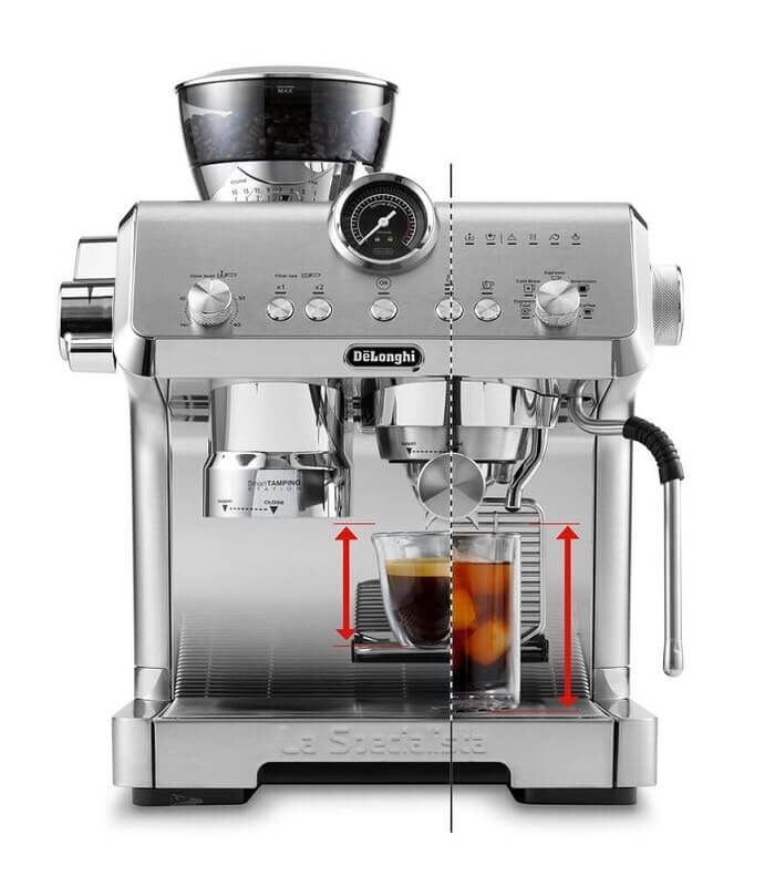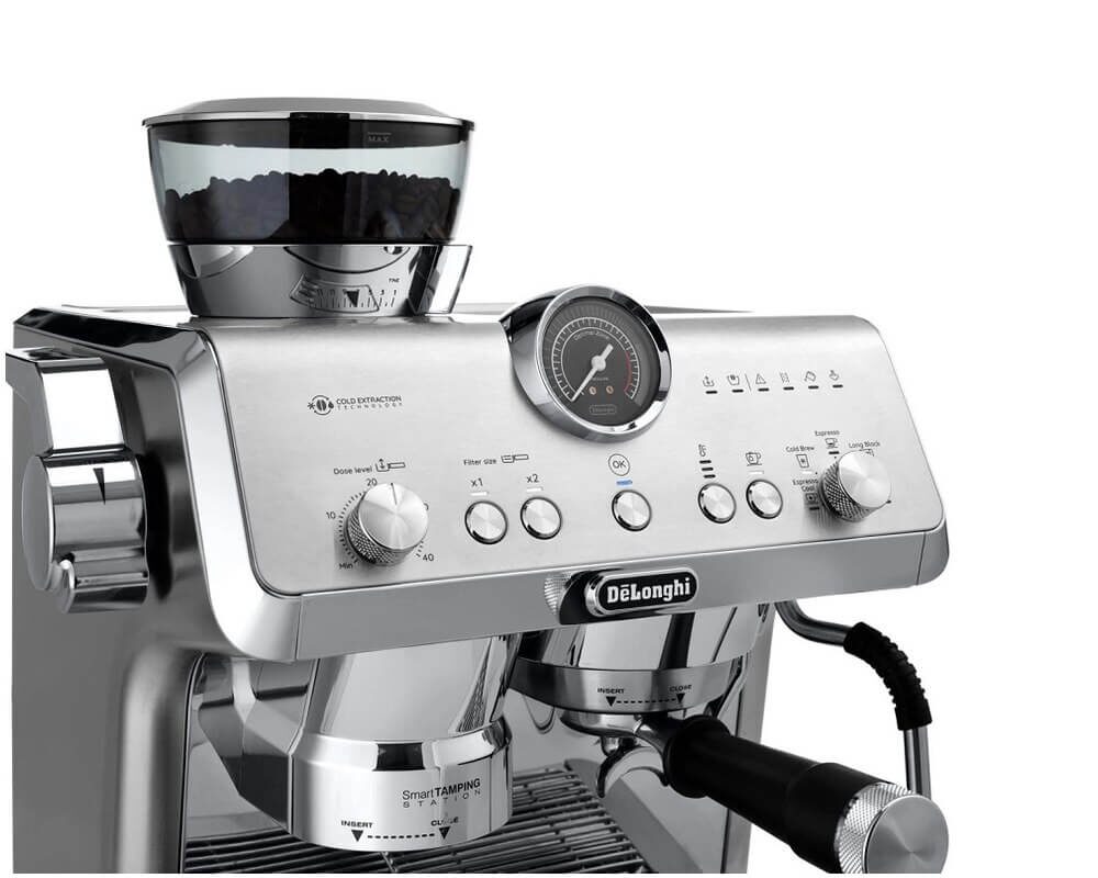 степень помола зерна (15 степеней), крепость напитка, объем напитка, температуры (3 настройки), давления пара