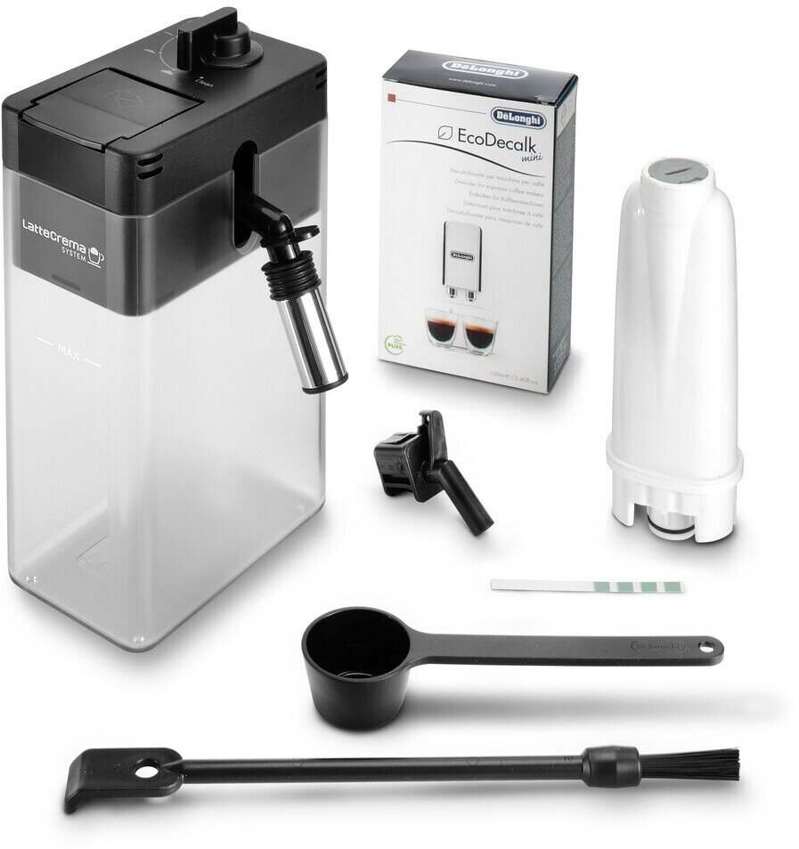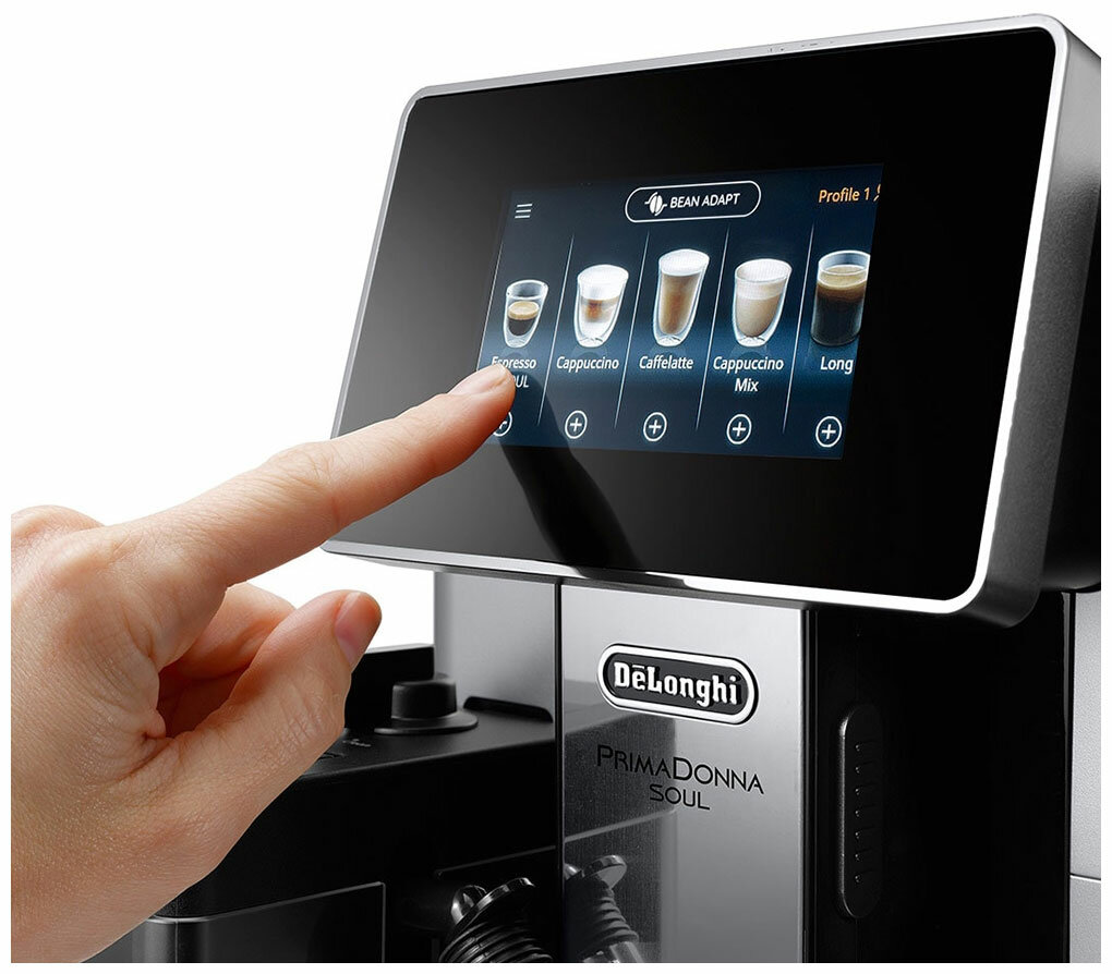 материал корпуса - металл/пластик, объем емкости для молока 0.5 л; дисплей 4,3 ", цветной TFT, сенсорная панель, тип управления: сенсорный + мобильное приложение Coffee Link App, 3 профиля; система «зерновых профилей» Bean Adapt, звуковой сигнал, встроенные часы, таймер; кофемолка жерновая, металлическая, плоско-параллельная; регулировка диспенсера по высоте, регулировка количества молочной пены, 5 уровней крепости, 18 автоматических рецептов, функция "чай", автоматическая очистка капучинатора; комплектация: средство для удаления накипи, щетка для чистки, смягчающий фильтр, мерная ложка, индикаторная полоска, узел для удаления накипи