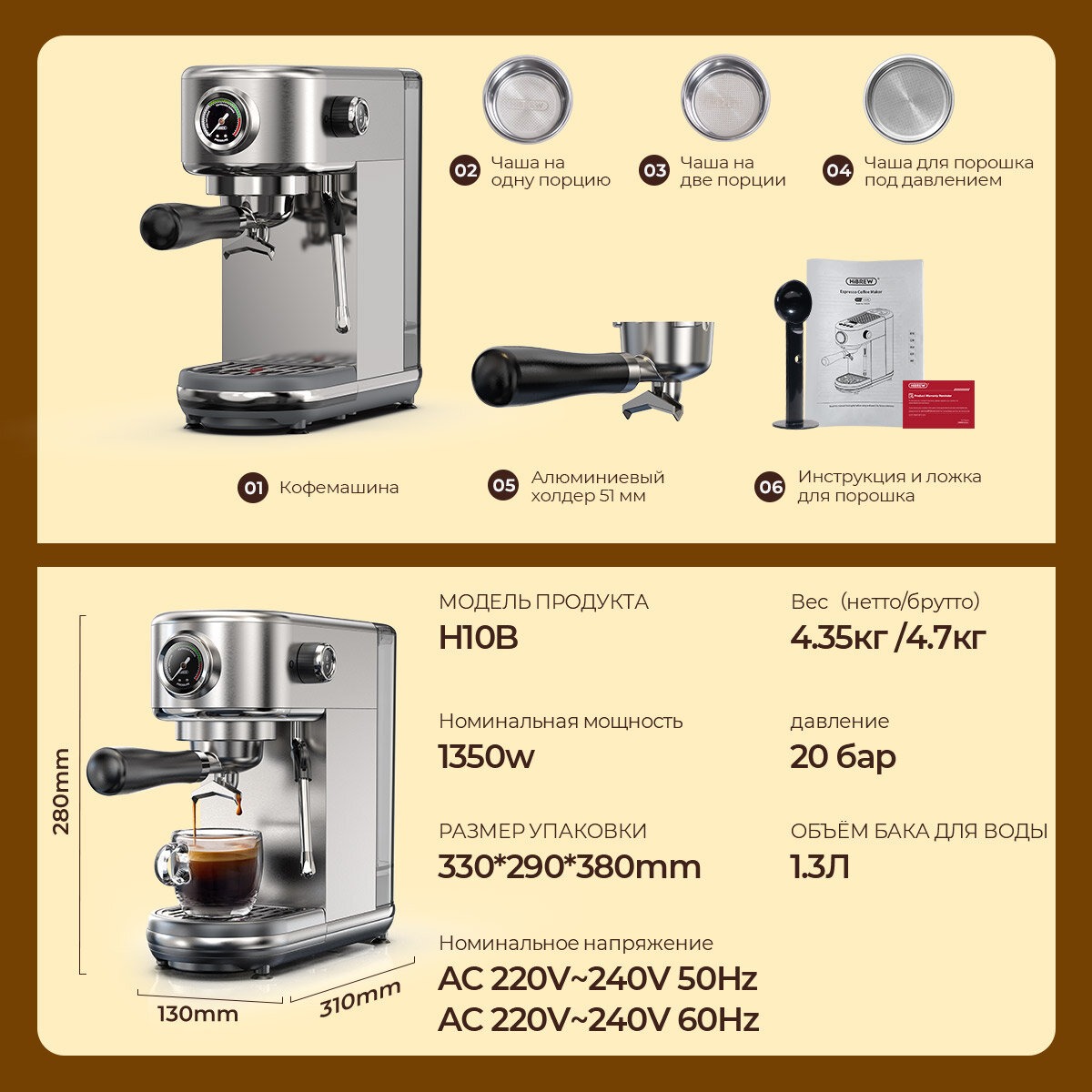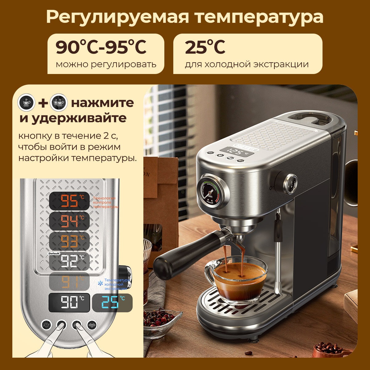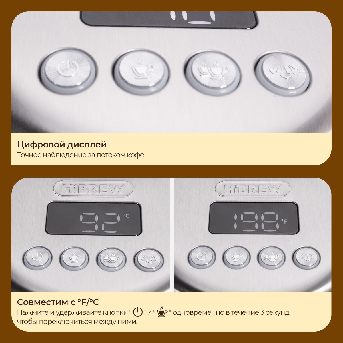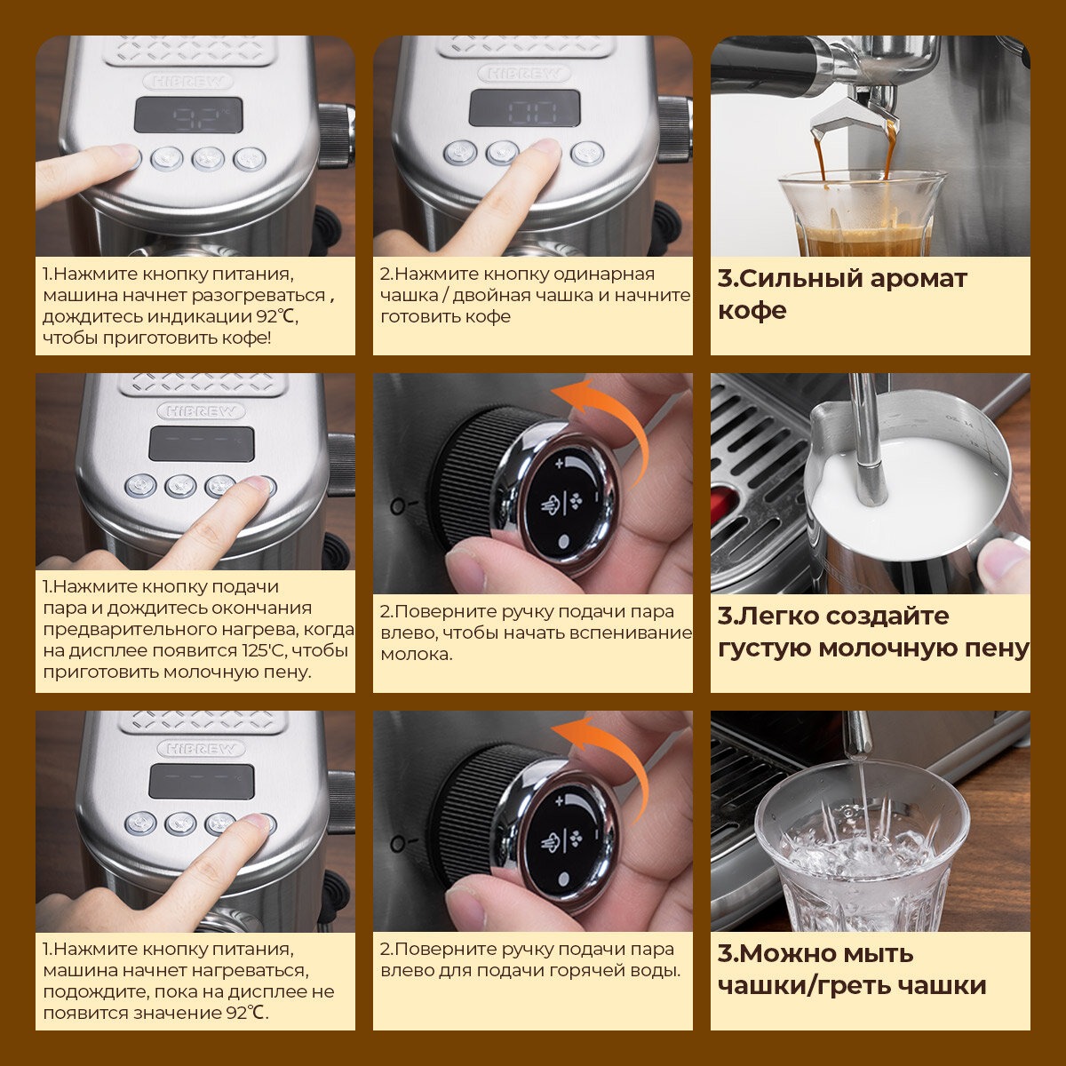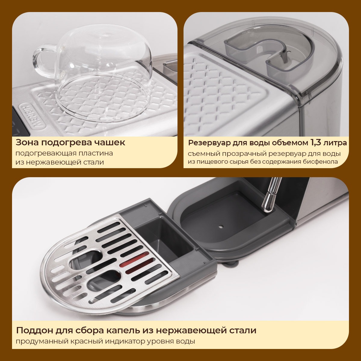 Конструкция кофеварок/кофемашин: Встроенный термометр, Дисплей, Фильтр от накипи, Противокапельная система, Парогенератор