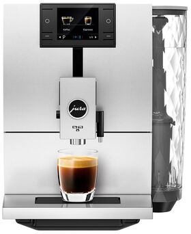 Кофемашина JURA ENA 8 Full Nordic White — выбор тех, кто хочет получить проверенные швейцарские технологии приготовления кофе в дизайнерском исполнении. Полностью автоматическая модель в один клик готовит как эспрессо и ристретто, так и нежные молочные напитки: капучино, латте, флэт уайт или отдельную порцию горячего молока. Выбрать рецепт и отрегулировать крепость и температуру кофе можно с помощью удобного сенсорного дисплея.