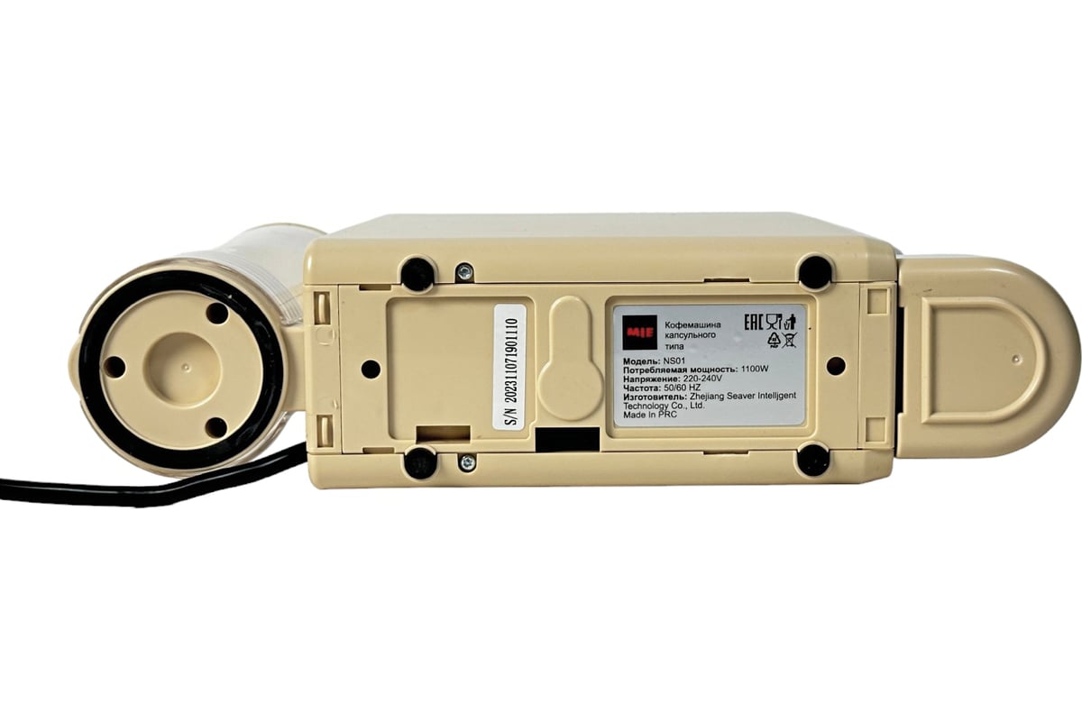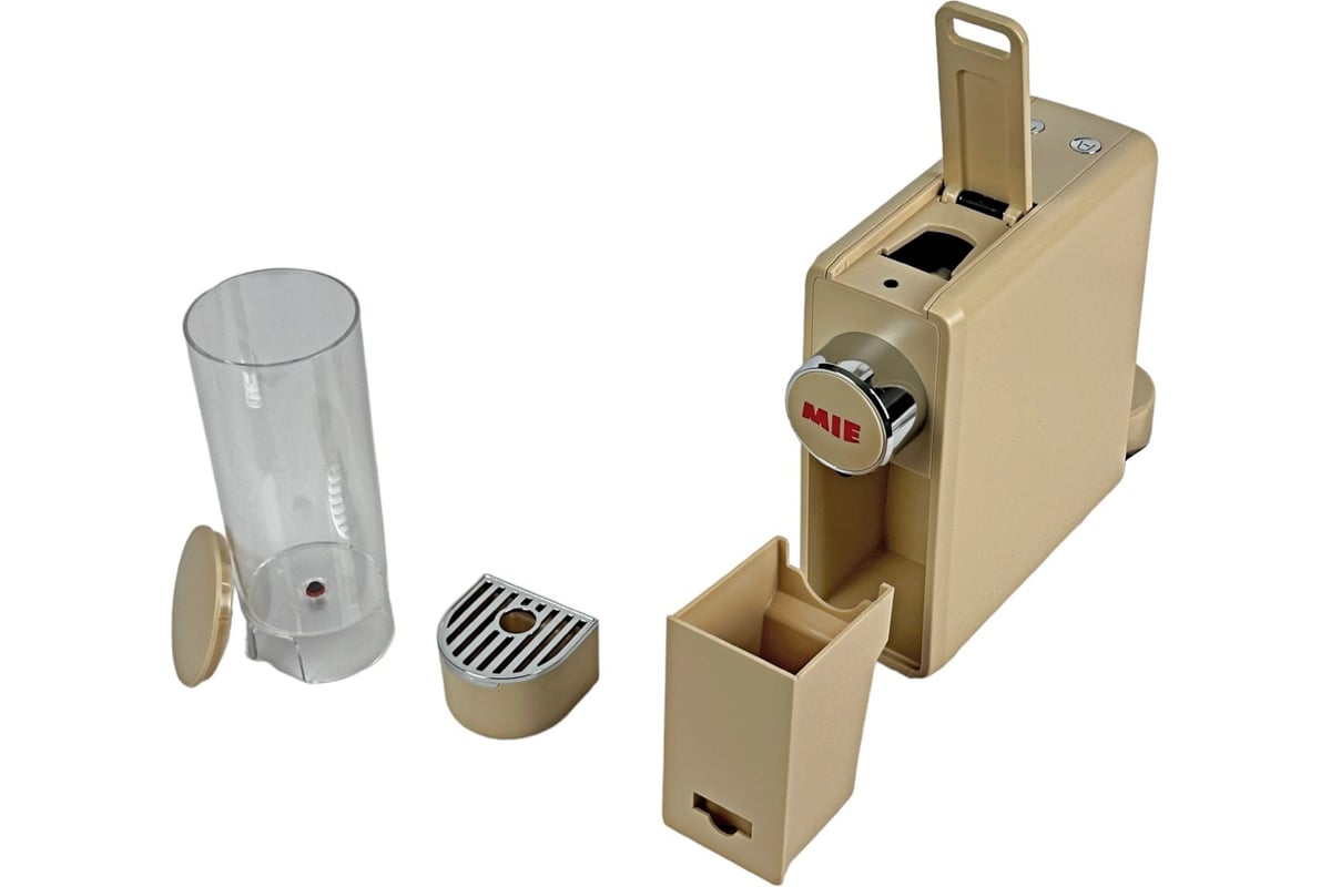 Особенности кофеаппарата MIE NS01 включают съёмный поддон для капель, резервуар для воды объемом 600 мл и возможность выбора объема порции. Для очистки кофемашины достаточно просто регулярно промывать резервуар с водой и своевременно опорожнять контейнер для капсул.