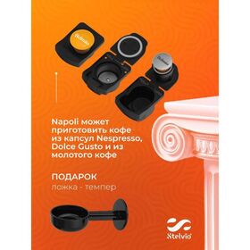 Три сменных адаптера позволяют использовать молотый кофе и капсулы разных форматов. В комплект входит темпер для равномерного распределения и прессования молотого кофе, что обеспечивает оптимальную экстракцию и насыщенный вкус напитка.