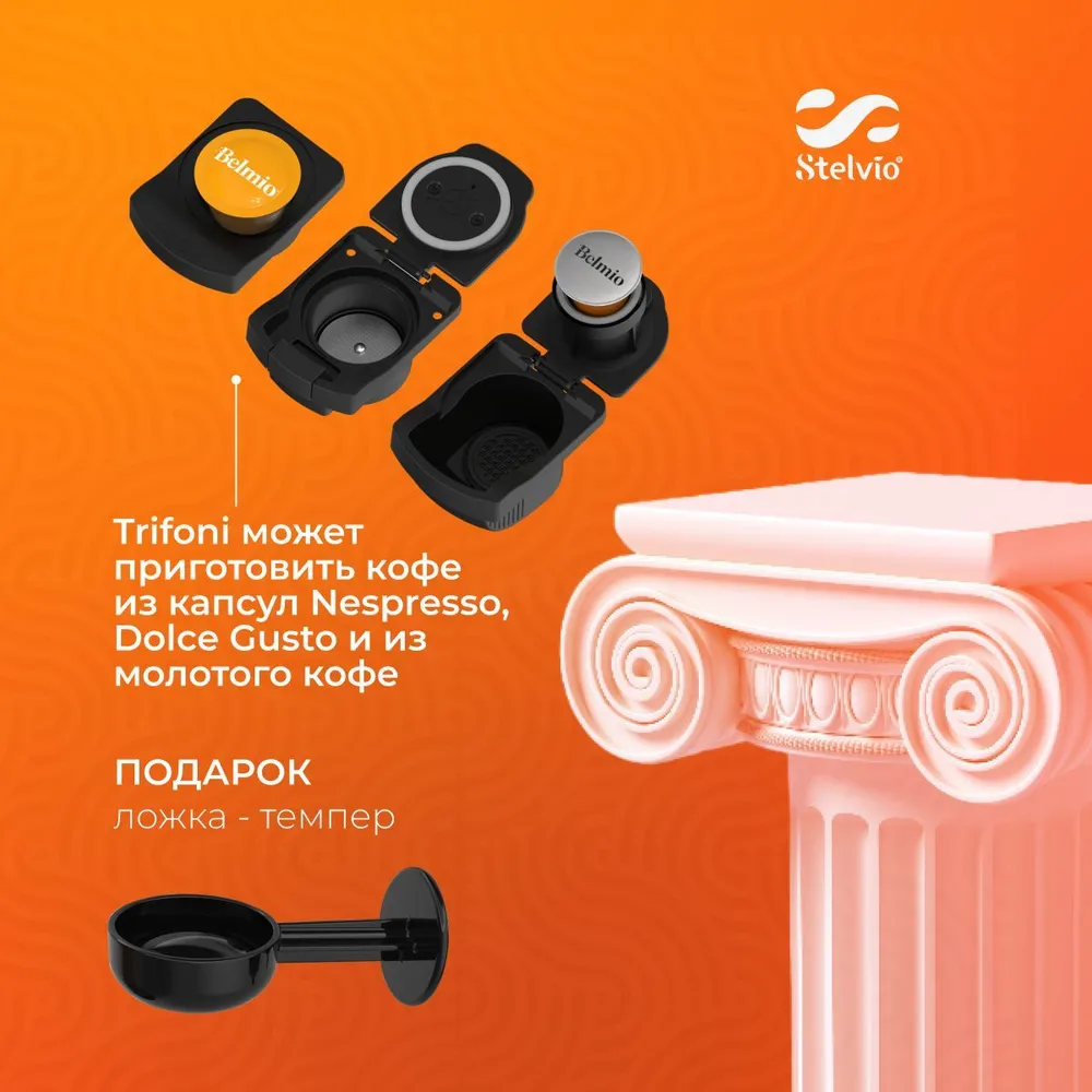 Капсульная кофемашина, подставка для чашки, решетка подставки для чашки, бак для воды, крышка бака для воды, адаптер для капсул Nespresso, адаптер для капсул Dolce Gusto, адаптер для молотого кофе, ложка-темпер, шнур питания