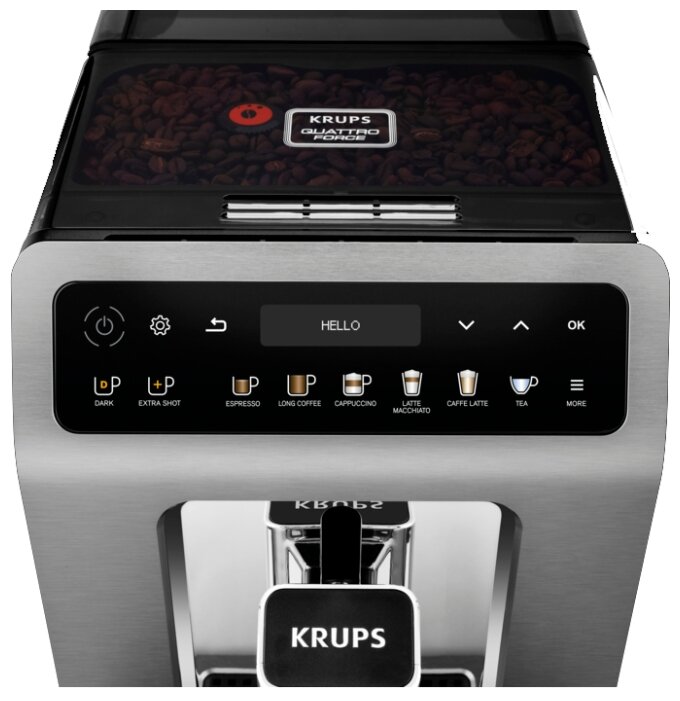 - 19 рецептов; контейнер для использованного кофе на 9 порций; 3 степени помола; 3 уровня крепости, 3 температурных режима; регулировка высоты сопла подачи кофе; режим экономии энергии; автоматическая очистка; 19 языков