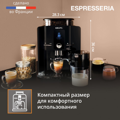 Благодаря компактному размеру кофемашина станет прекрасным дополнением даже небольшой кухни.