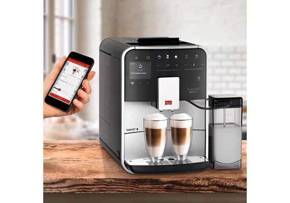 Melitta® Barista T Smart - кофемашина от Melitta нового поколения с дистанционным управлением через смартфон. Эта инновационная кофемашина позволяет приготовить 18 великолепных кофейных напитков по вашему вкусу и обеспечивает удобное управление. Любители кофе смогут легко приготовить любой кофейный напиток с помощью приложения Melitta Connect. Следуя имеющейся пошаговой инструкции, вы сможете легко выполнять уход за кофемашиной. Благодаря широкому набору полезных функций, таких как: Intense Aroma, My Coffеe Memory, Best Aroma System, Touch & Slide вы можете добиться идеального вкуса кофе.
