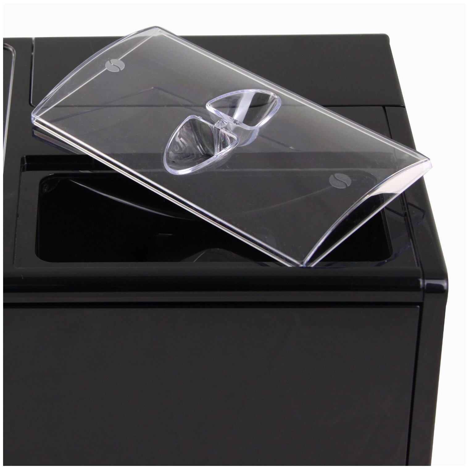 подсветка дисплея, отсек для шнура, съемный лоток для сбора капель, индикатор уровня воды, индикатор включения, контейнер для отходов, дисплей