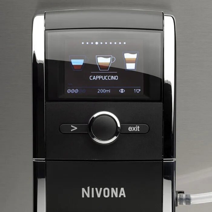 энергосберегающий режим; подсветка 2 цвета; 10 рецептов "Мой кофе"; текстовый дисплей на русском языке и символьное обозначение; автоматические программы промывки и очистки; регулируемый по высоте дозатор кофе; термос для охлаждения молока 0.5л; 5 степеней помола