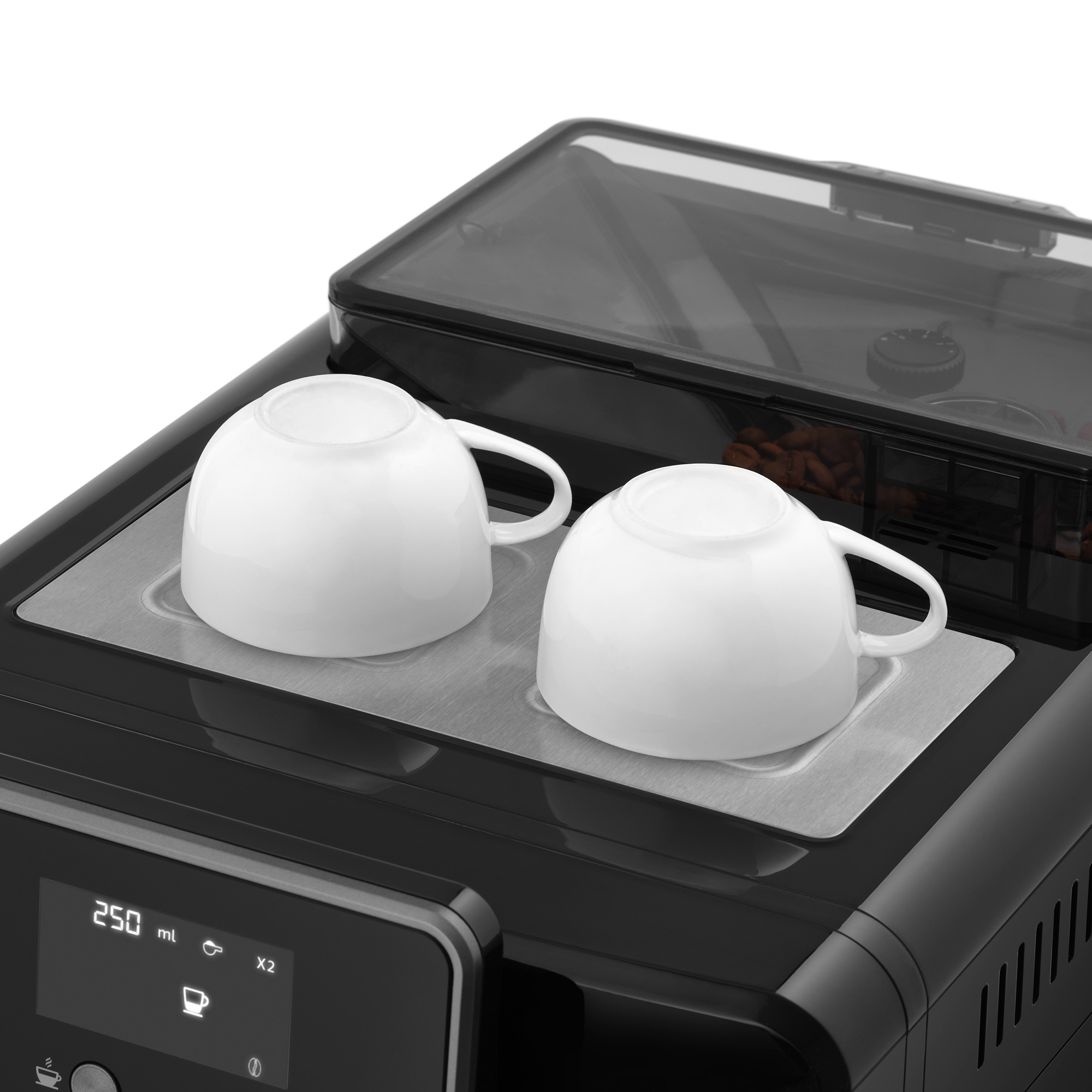 Функционал прибора продуман до мелочей: вы сможете выбрать крепость кофе (9–11 г), его температуру (75°С–95°С), объем молока и плотность пенки, объем напитка (20-250 мл). Комфорту в использовании способствует подсветка кружки и металлическая подставка для ее подогрева.