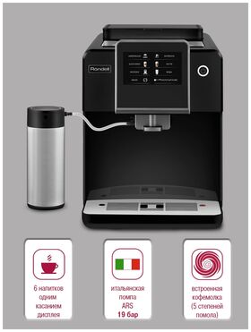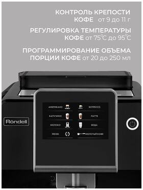 Автоматическая кофемашина RDE-1110 с сенсорным управлением обеспечивает непревзойденный уровень комфорта в приготовлении любимых напитков. Вы будете удивлены, насколько этот процесс может быть легким и завораживающим! Эспрессо и капучино, американо и латте готовятся одним нажатием соответствующей иконки на цветном пятидюймовом TFT-дисплее. Кроме того, кофемашина идеально взобьёт молочную пенку или просто нагреет воду.