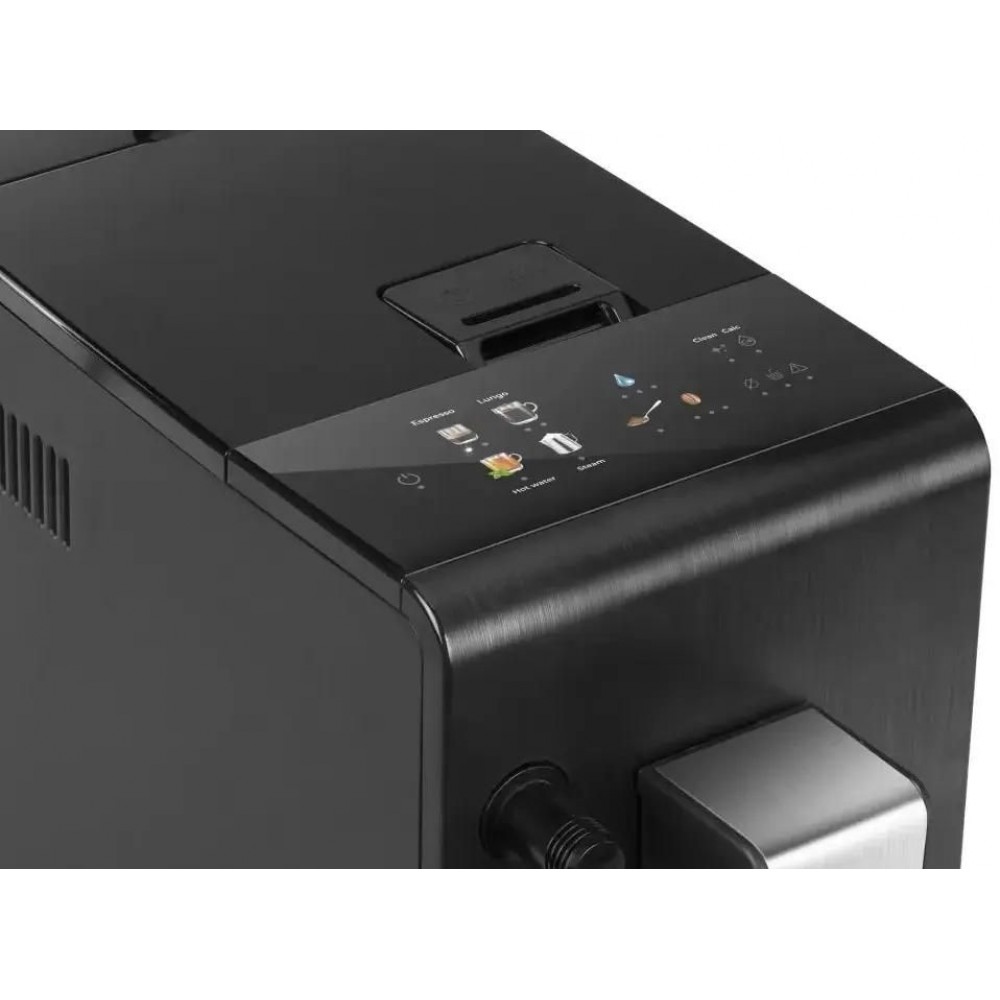 Объем резервуара для воды — 1,4 л, контейнера для зерен — 170 г. Возможна установка чашки высотой от 85 до 140 мм. Встроенные функции: начальная очистка, промывка при выключении, функция подачи пара, настройка температуры и жесткости воды.