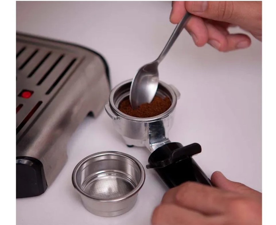 Рожковая кофеварка мощностью 850 Вт оснащена помпой, которая обеспечивает давление 20 бар, что позволяет получить максимум вкуса и аромата из кофе. Устройство может готовить одновременно две чашки напитка. Предусмотрен подогрев чашек. Кофеварка оснащена удобным сенсорным управлением. Встроенный капучинатор позволит получить пышную молочную пенку или подогреть напиток горячим паром. Кофеварка выполнена в стильном дизайне и идеально впишется в интерьер кухни.