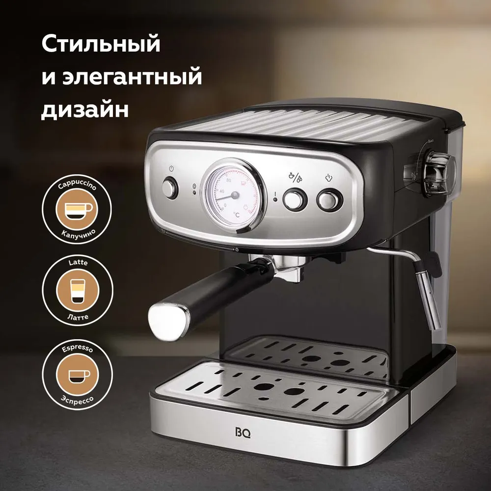 Кофеварка рожковая с капучинатором BQ CM1006 Черно-серебристая