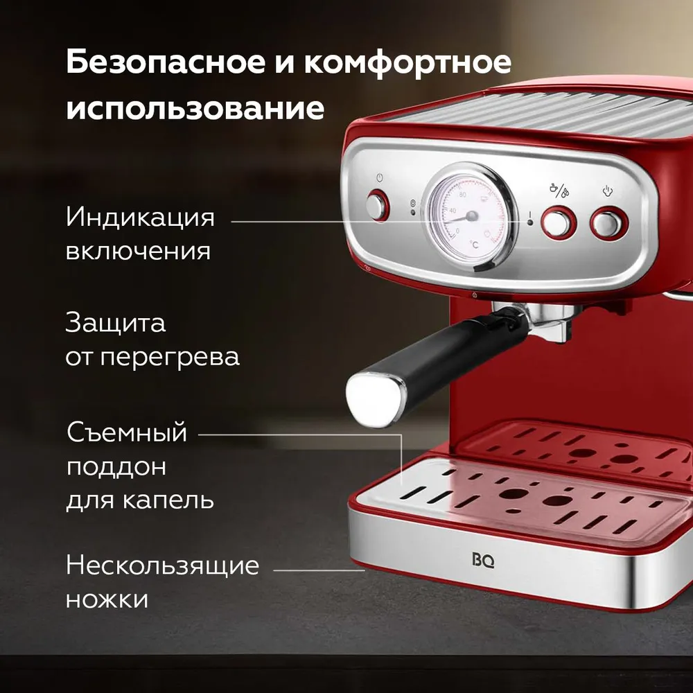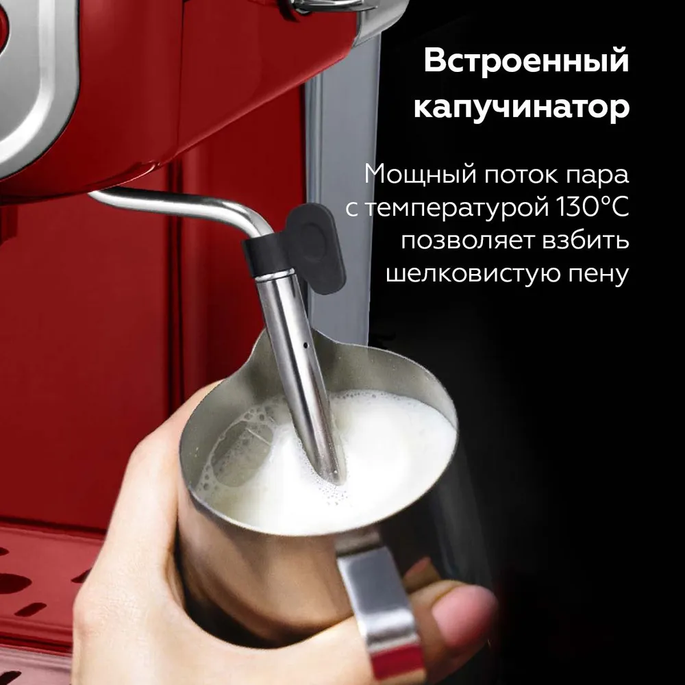 Кофеварка рожковая с капучинатором BQ CM1006 Красно-серебристая