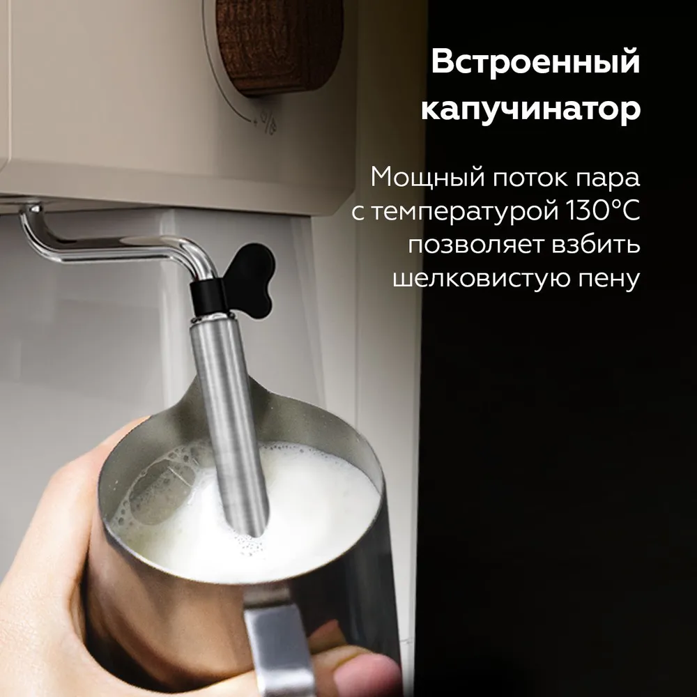 Кофеварка рожковая с капучинатором BQ CM2006 Бежевая с подогревом чашек