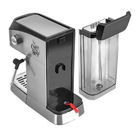 Тип кофеварки: рожковый, Тип используемого кофе: молотый, Подходит для приготовление эспрессо и капучино, Кнопочное управление + LED подсветка кнопок, Съемный бак для воды, Стимер для приготовления плотной молочной пены, Съемный моющийся поддон для сбора воды, Защита от перегрева и избыточного давления, Съемный фильтр на одну и две чашки из нержавеющей стали, Функция автоотключения, Площадка для подогрева чашек, Итальянская помпа высокой производительности, Функция предварительного смачивания кофе, LED дисплей, Стальной корпус кофеварки, Функция памяти объема напитка