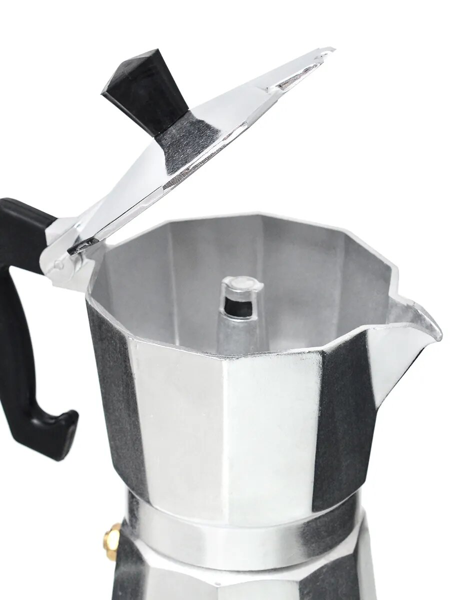 Кофеварка "Гейзер" 2 порций 150мл Классическая кофеварка-гейзер прекрасно подходит для традиционного приготовления кофе эспрессо и будет ежедневно радовать Вас ароматным бодрящим кофе. Кофеварка изготовлена из гигиенически безопасного металла, эргономичная ручка из жароупорного пластика, ручка не обжигает руки и снабжена силиконовой прокладкой. Подходит для газовых, электрических и стеклокерамических плит. Не подходит для мытья в посудомоечной машине.