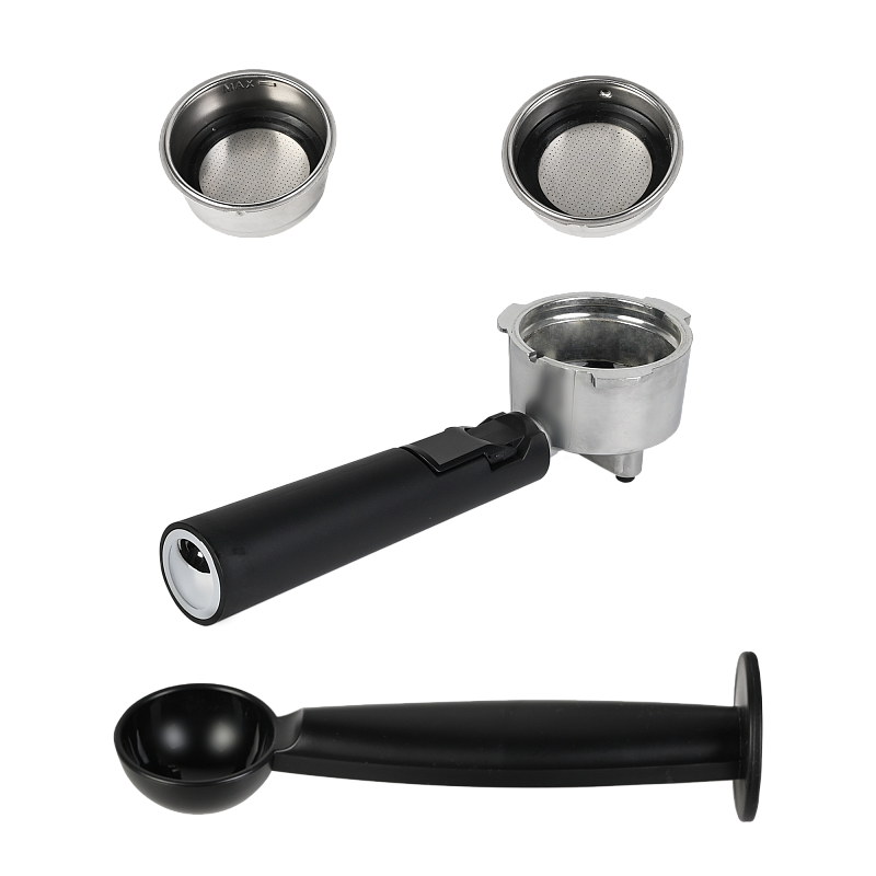 Кофеварка, Съемный рожок, Капучинатор, Малый фильтр для кофе, Большой фильтр для кофе, Мерная ложка с темпером