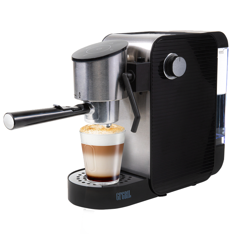 Кофеварка капсульная 3 в 1 с автоматическим капучинатором GFGRIL GFC-С500 быстро и просто поможет приготовить эспрессо, капучино или латте. Кофеварка имеет несколько адаптеров и может работать как рожковая кофеварка для молотого кофе, а также как капсульная кофеварка Nespresso®. Кофемашина с капучинатором имеет режим взбивания молочной пены, чтобы быстро приготовить латте, капучино, какао с молоком. Модель имеет съемный шланг для присоединения к кофеварке емкости с молоком, поэтому Вы можете использовать свежее молоко прямо в пакете из холодильника. Кофеварка электрическая обладает высокой мощностью 1400 Вт и помпой с давлением 19 бар, что позволяет получить кофе высокого качества с ярким насыщенным вкусом. Простое сенсорное управление позволяет легко приготовить одинарную или двойную порцию эспрессо или включить капучинатор.