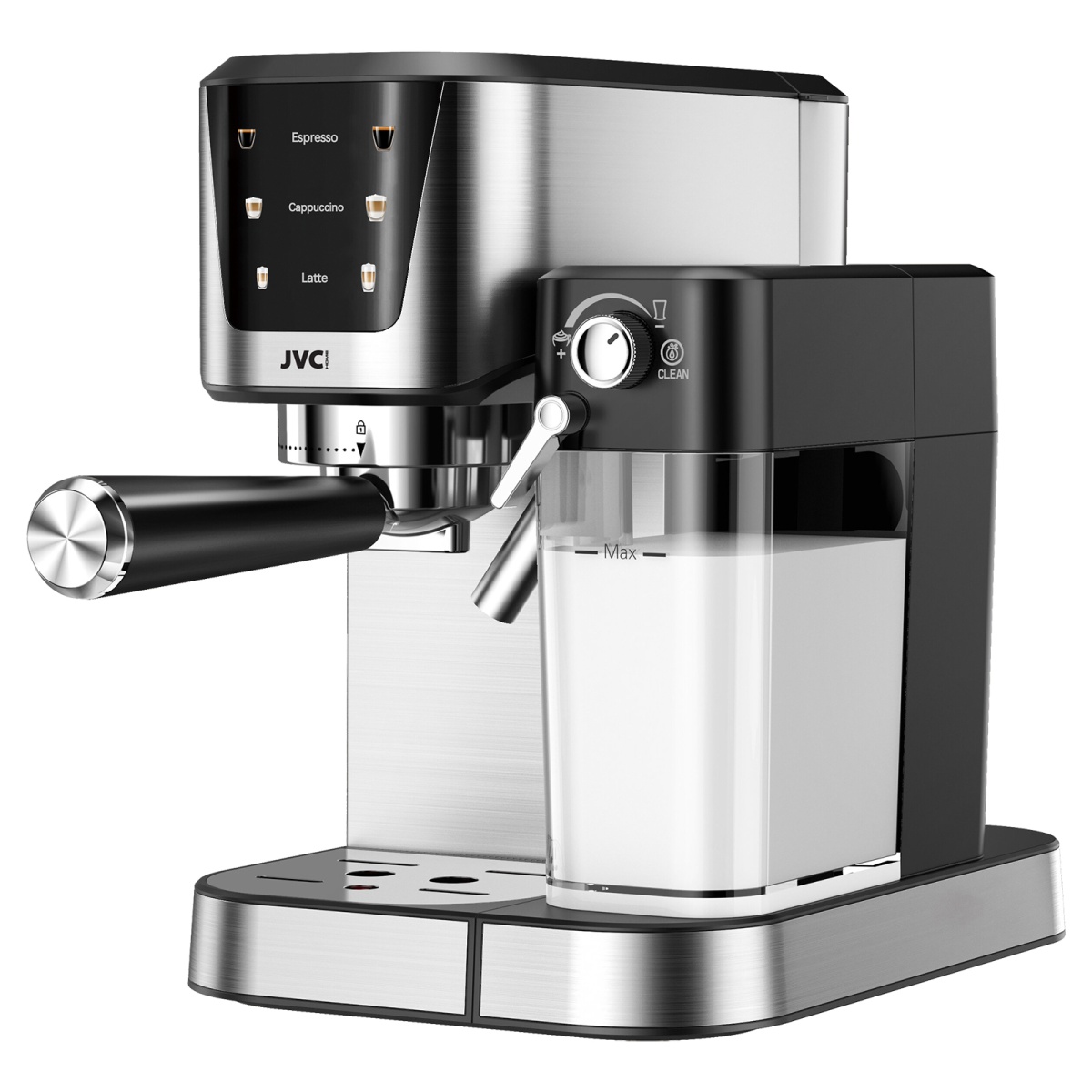 кофемашина, съемный резервуар для воды, съемный резервуар для молока, съемный лоток для сбора капель, рожок, металлические сетчатые фильтры на одну и две чашки, мерная ложка с темпером для трамбовки кофе, набор силиконовых прокладок, щеточка для чистки, гарантийный талон, инструкция на русском языке